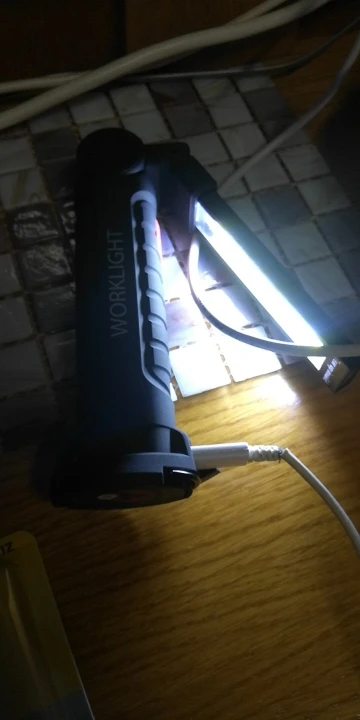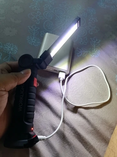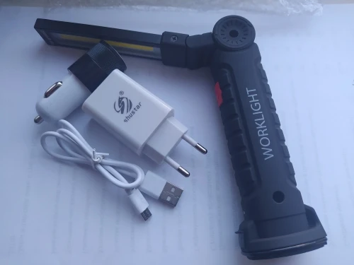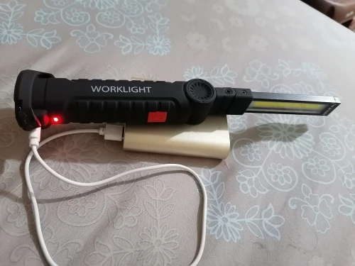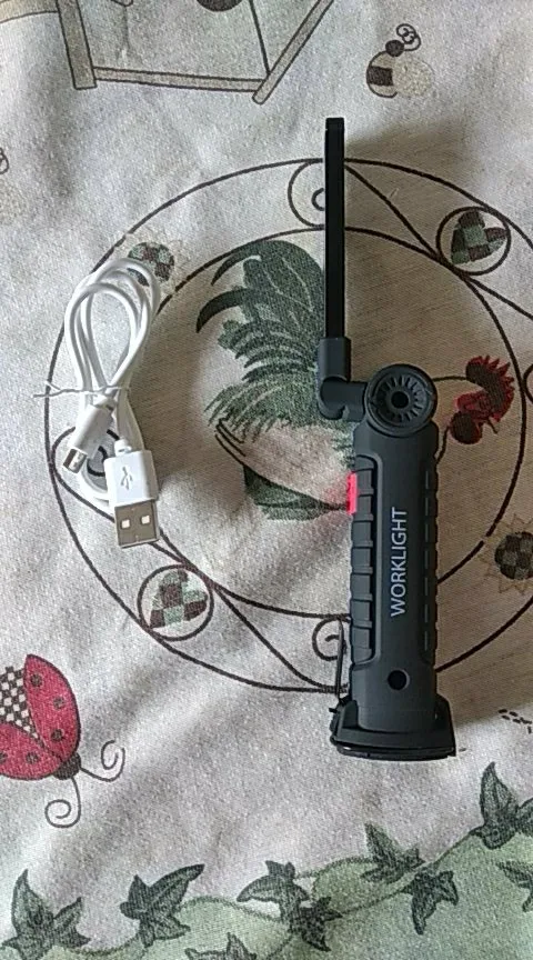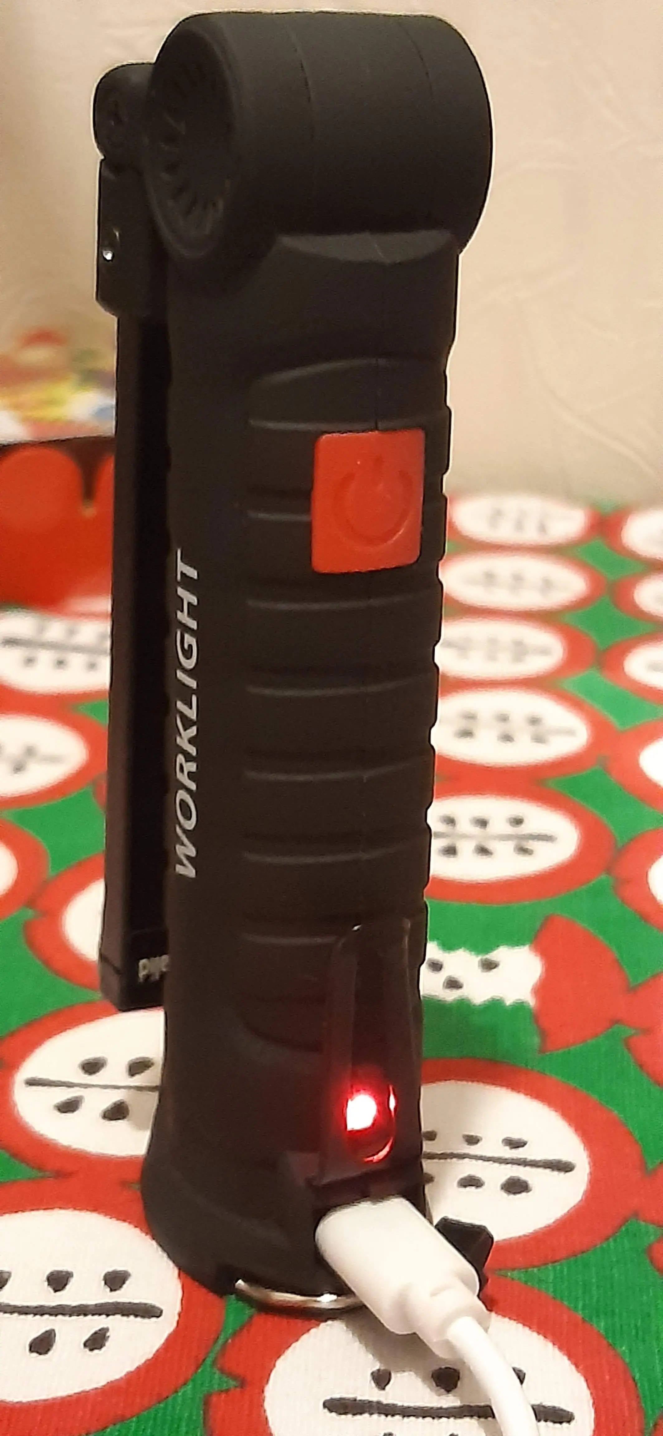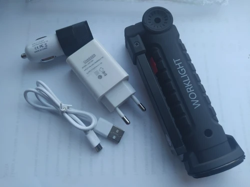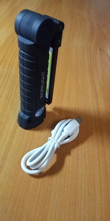 Отличный фонарик, Универсальный. Стоит уверено на столе, есть ещё дополнительно Магнит и крючек - для похода очень полезно. Зарядка Micro USB, под заглушкой. Осветительная часть поворачивается на 360 градусов, можно отрегулировать угол который вам нравится. 3 режима яркий и тусклый на основной ленте и дополнительно маленький фонарик на торце. Кабель Micro USB - среднего качества. По времени работы фонарика пока сказать не могу. Рекомендую.