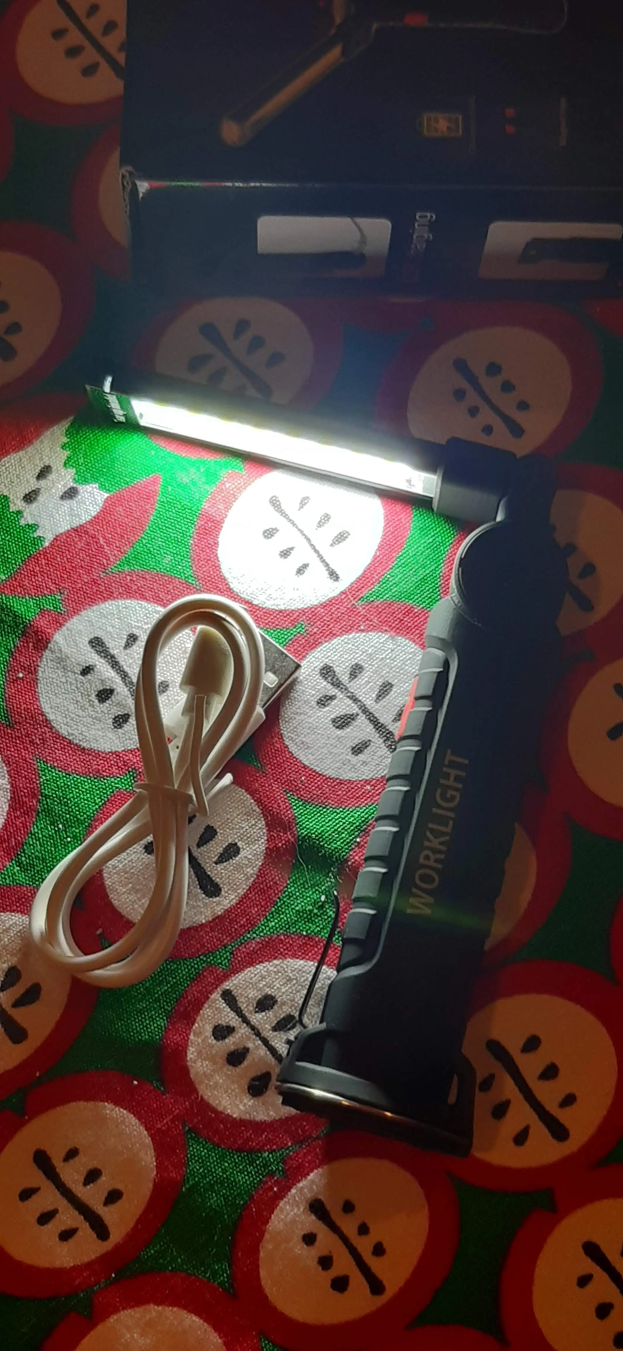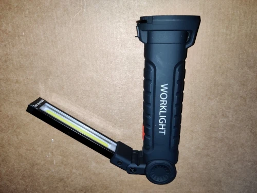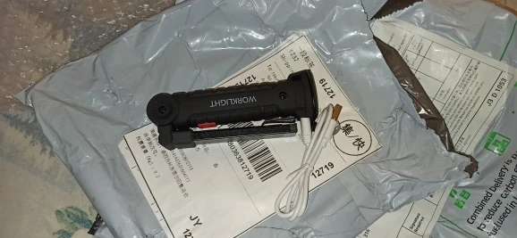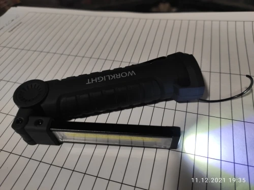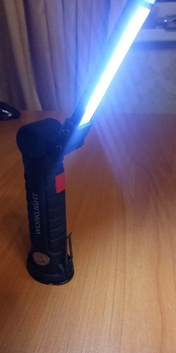 Отправка быстрая. Трек отслеживался. Упаковка в пупырку. Удобный фонарик для стеснённых мест, можно разместить при помощи крючка или магнита и направить свет в нужную сторону. Механизм складывания не люфтит, пластик мягкий, удобно лежит в руке, есть индикатор зарядки .