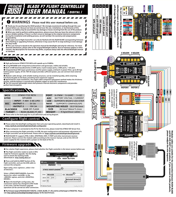 RUSHFPV RUSH BLADE F722 Аналоговый Цифровой Контроллер полета MPU60...
