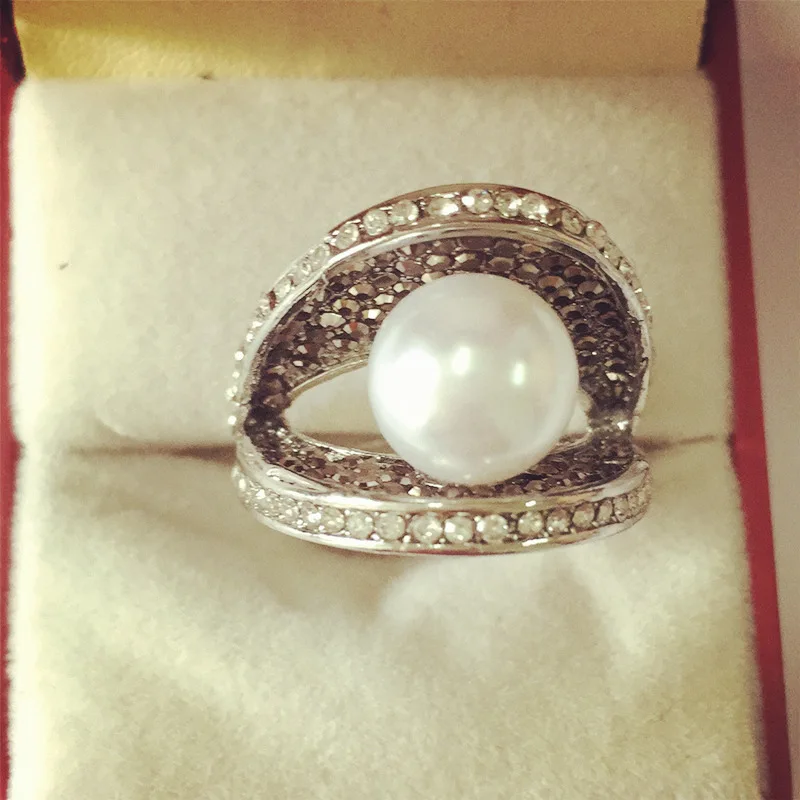 Женское кольцо с белым жемчугом Milangirl, винтажное геометрическое коктейльное кольцо с микро кристаллами