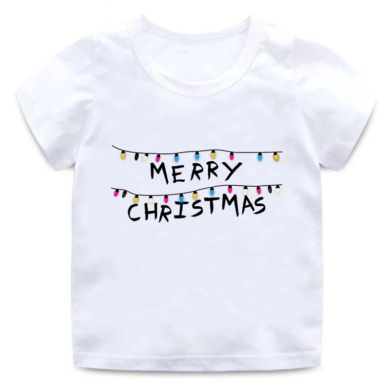 Детская футболка в европейском и американском стиле с рождественскими буквами, Однотонная футболка с коротким рукавом и круглым вырезом для мальчиков и девочек