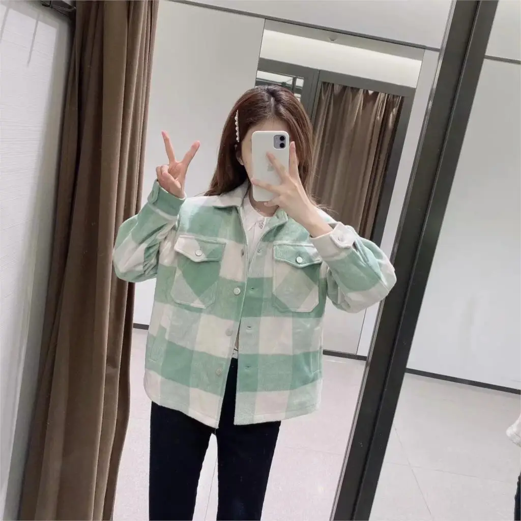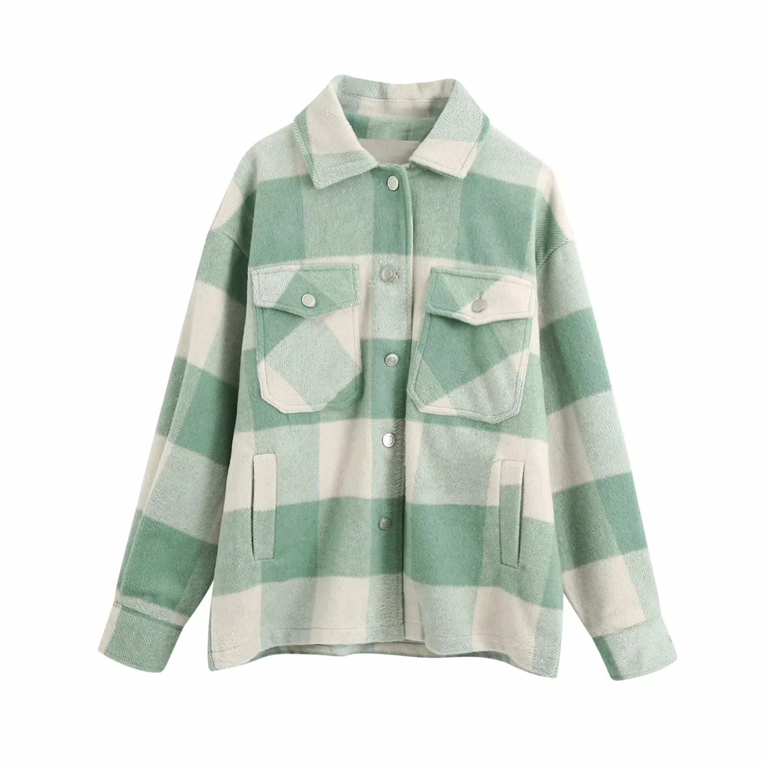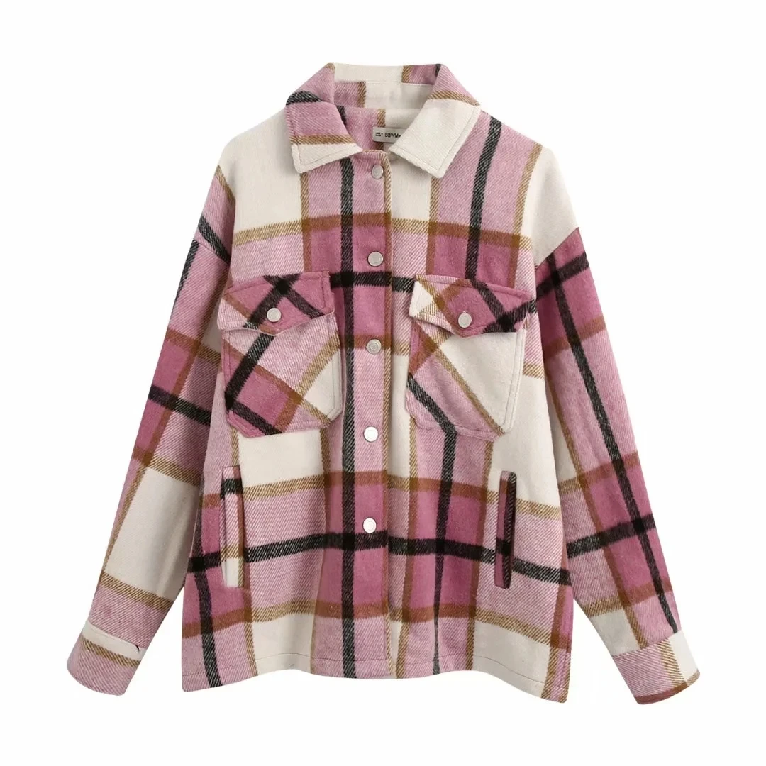 Модная розовая зеленая клетчатая куртка, Женское пальто с длинным рукавом, теплая плотная верхняя одежда, повседневная шикарная куртка оверсайз, модель 2020