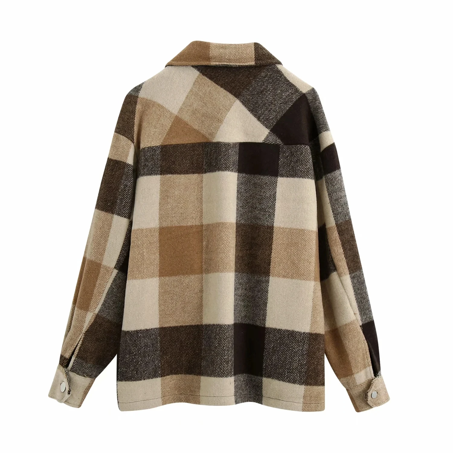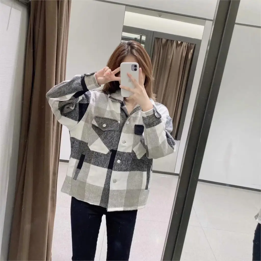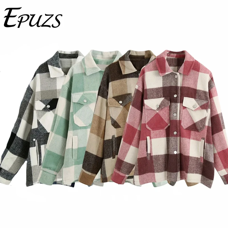 Модная розовая зеленая клетчатая куртка, Женское пальто с длинным рукавом, теплая плотная верхняя одежда, повседневная шикарная куртка оверсайз, модель 2020