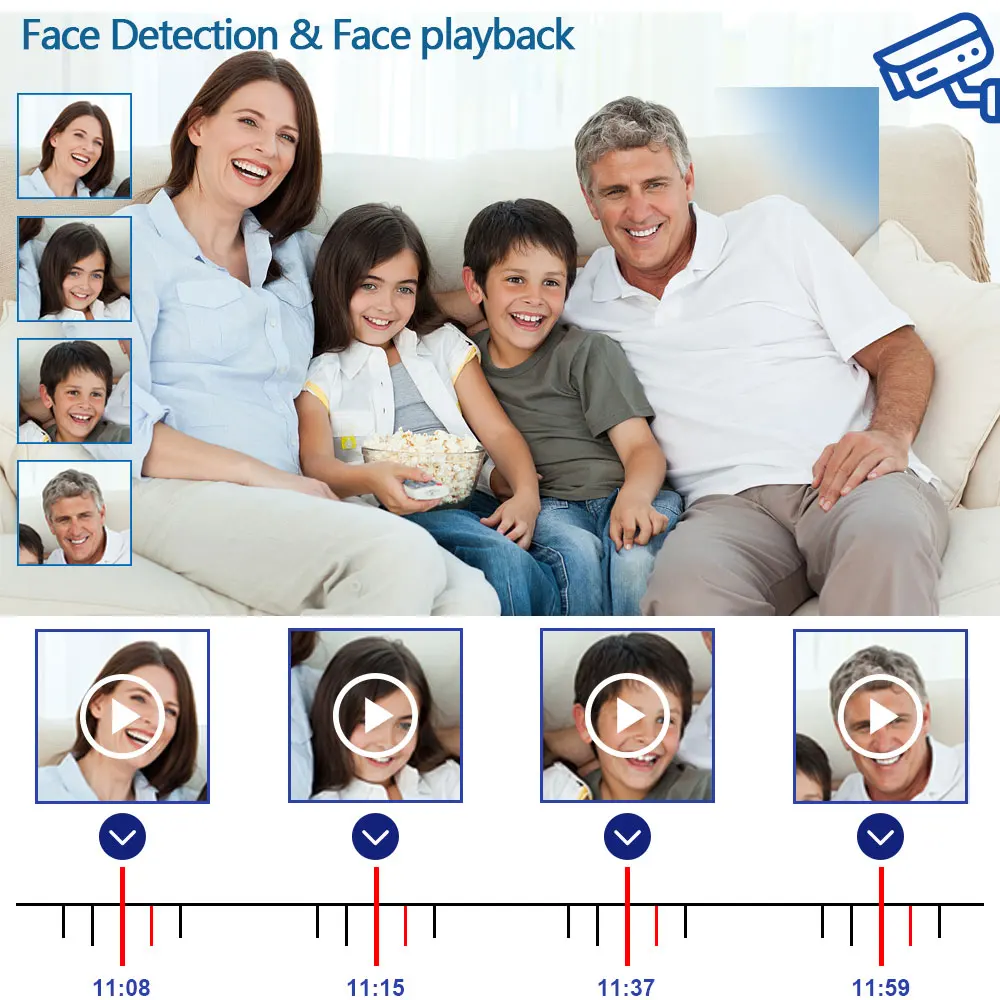 Распознавание лица, воспроизведение лица и запись лица; Быстрое снятие изображений лица и быстрое воспроизведение видео лица; Распознавание лица: автоматическое снятие изображений лица; Воспроизведение лица: интеллектуальное воспроизведение видео лица, экономия времени, не пропустите все детали.
