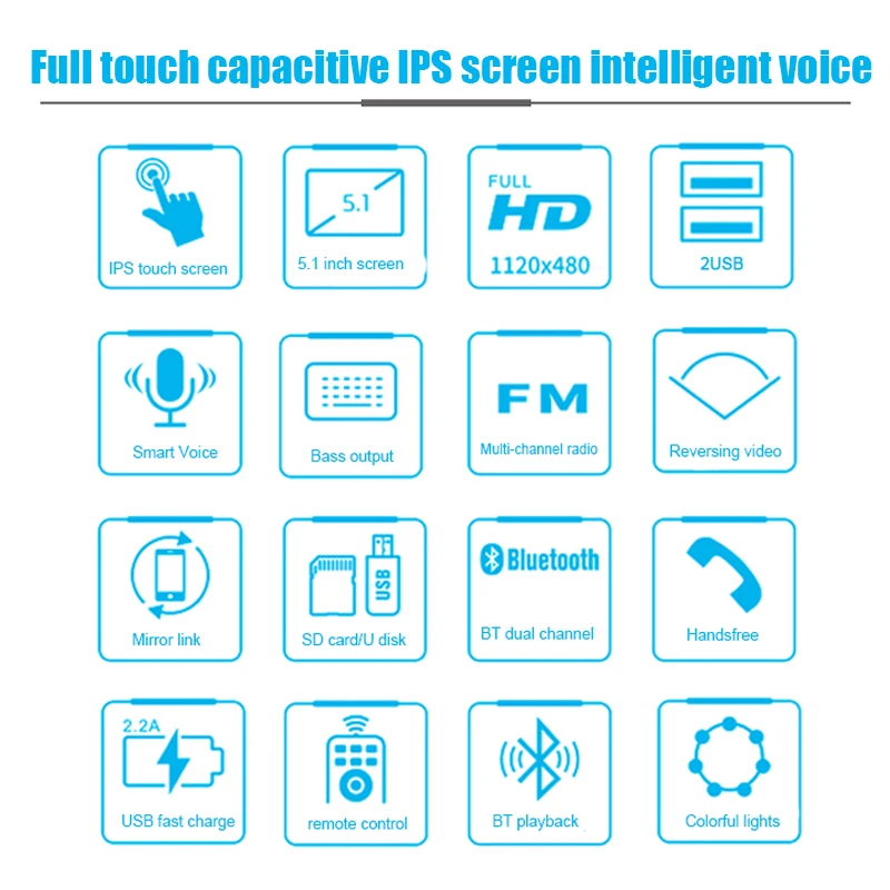 5,1 дюймов 1 Din MP5 автомобильное радио Bluetooth 12V Hands-free Звонки красочные огни USB AUX поддержка AI RM RMVB MP3 WMA