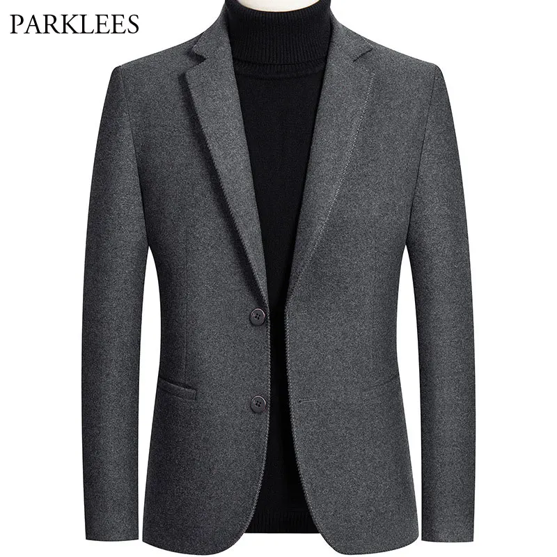 Роскошный шерстяной Блейзер для мужчин, новинка 2020, мужской классический однобортный пиджак, повседневный облегающий деловой блейзер для мужчин
