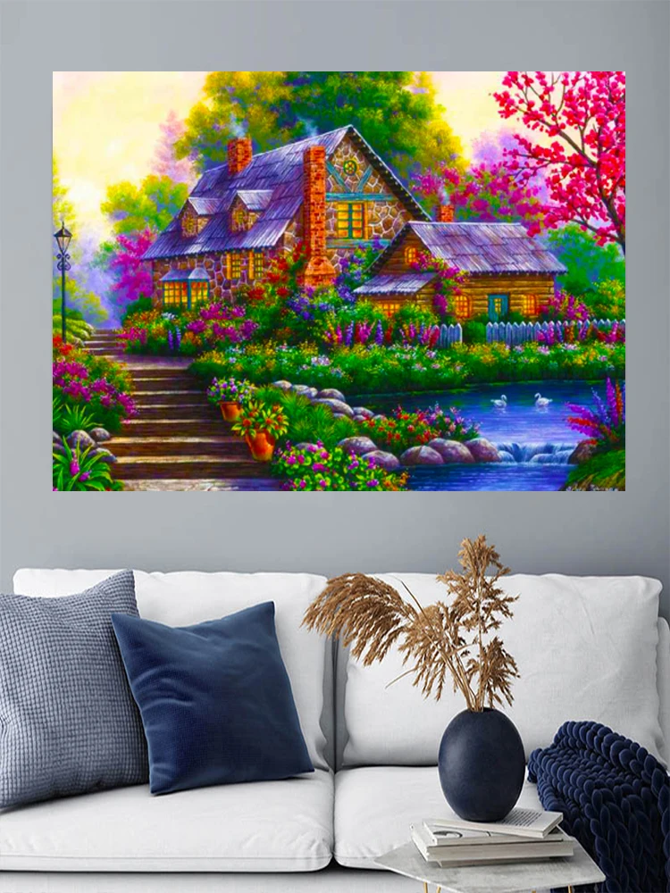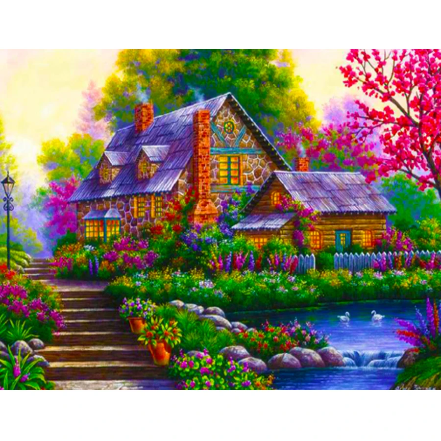 Алмазная картина, Садовый дом, весенний пейзаж, полный квадрат, круглая дрель, алмазная вышивка, Алмазная мозаика, наклейки на стену ручной работы