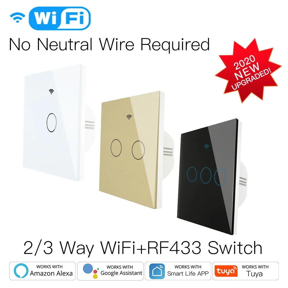 Умный выключатель света RF433 без нейтрального провода, Wi-Fi, управление через приложение Tuya, работает с Alexa, Google Home, 220 В, ЕС