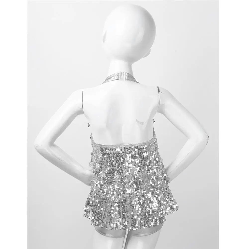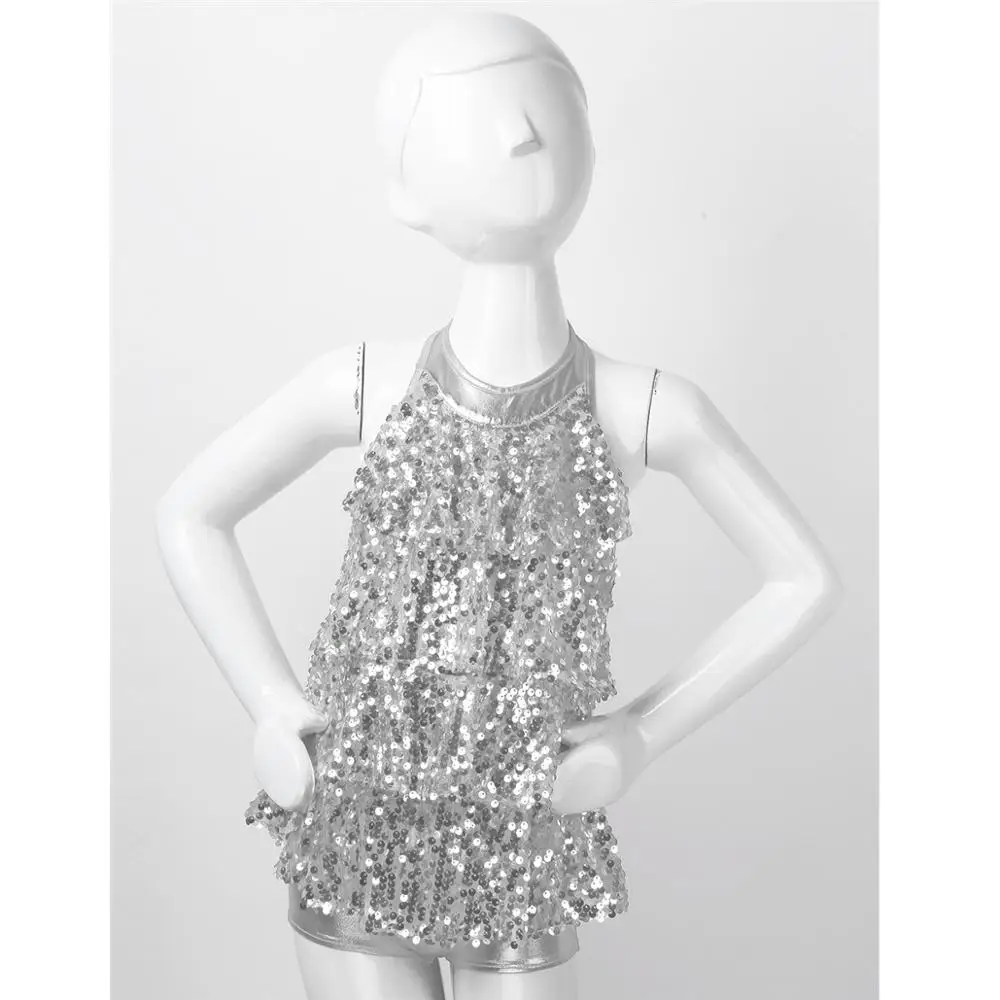 Детское балетное танцевальное платье с блестками и лямкой на шее для девочек, детское современное джазовое танцевальное платье, костюмы для латинских танцев
