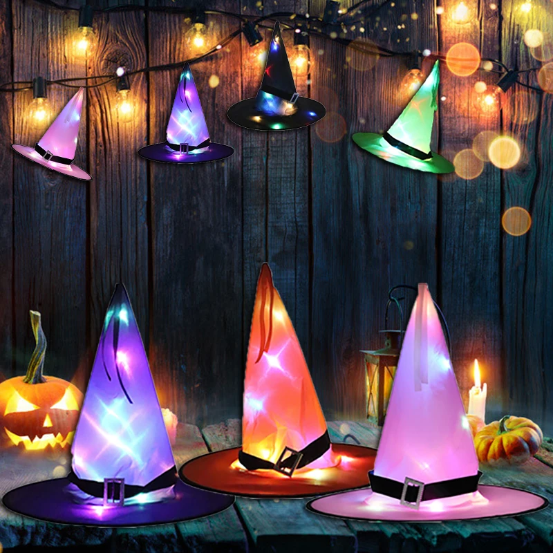 Светодиодные светильники, шляпы ведьмы, костюм на Хэллоуин, реквизи...