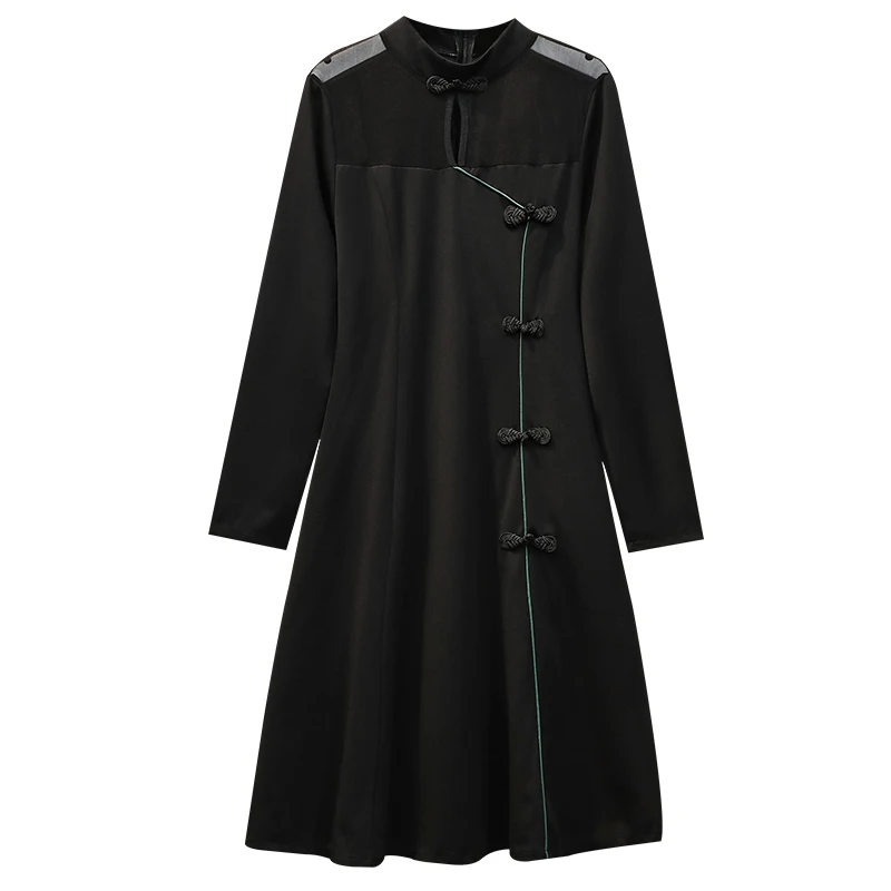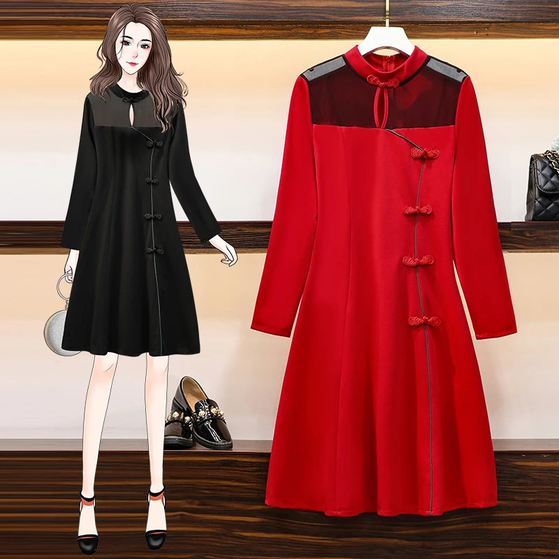 Осеннее искусственное винтажное красное черное цветное традиционное повседневное женское платье Ципао с длинным рукавом в китайском стиле
