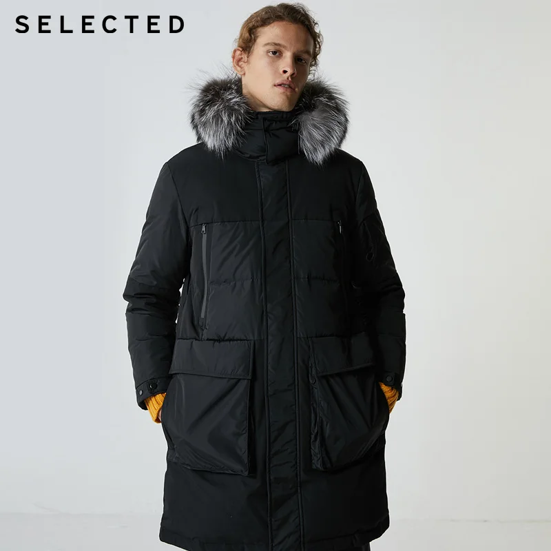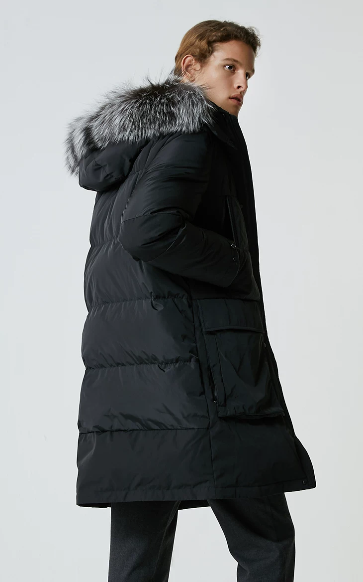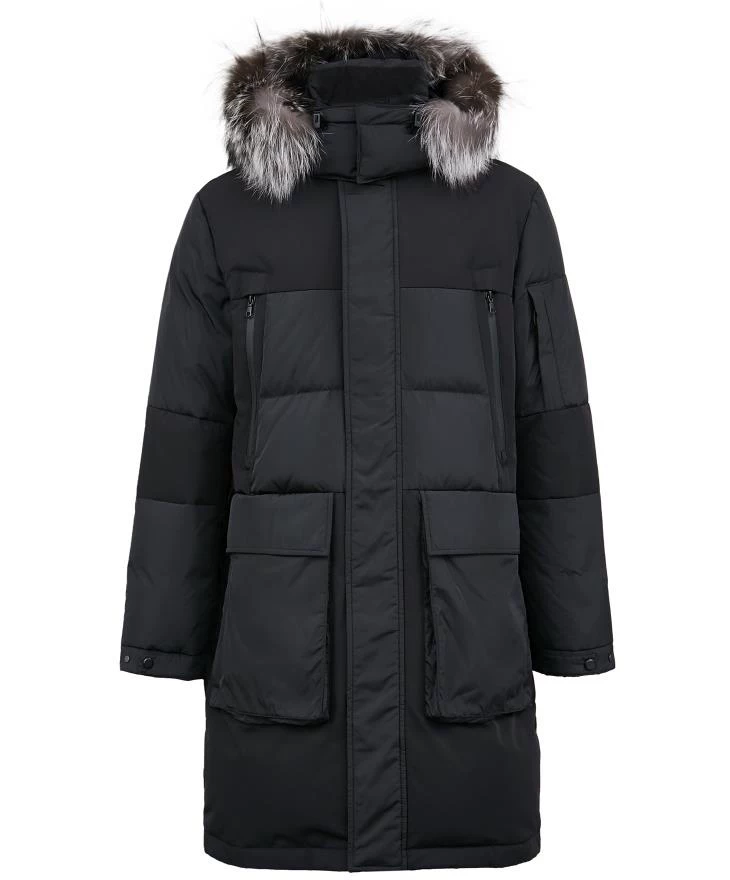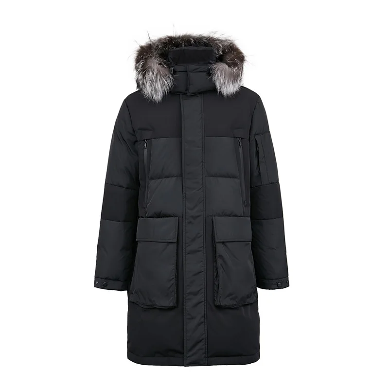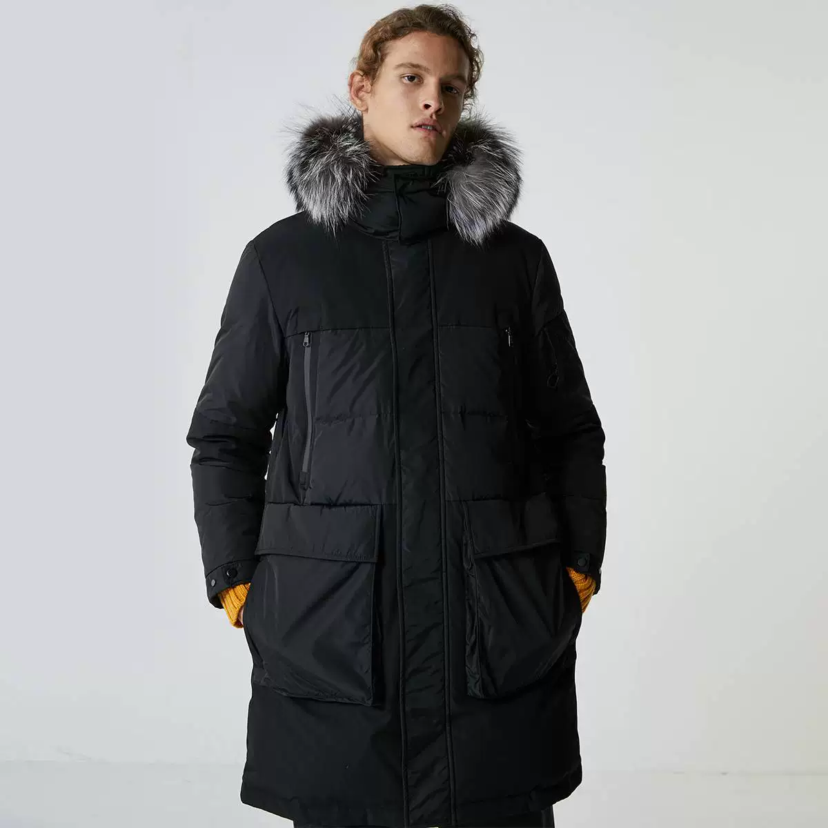 Мужская зимняя верхняя одежда средней длины с капюшоном из лисьего меха, куртка-пуховик 419412555