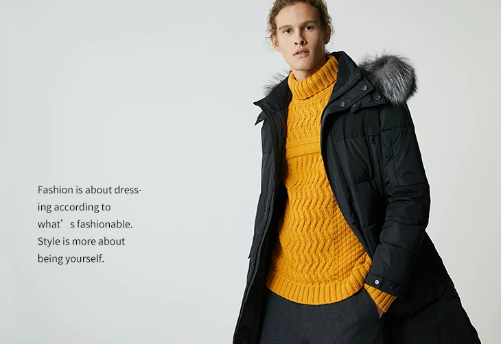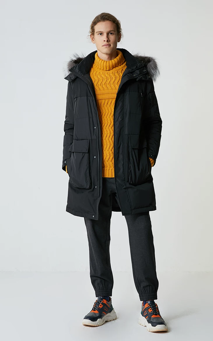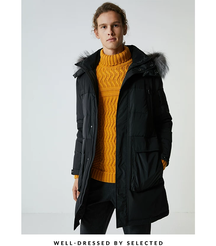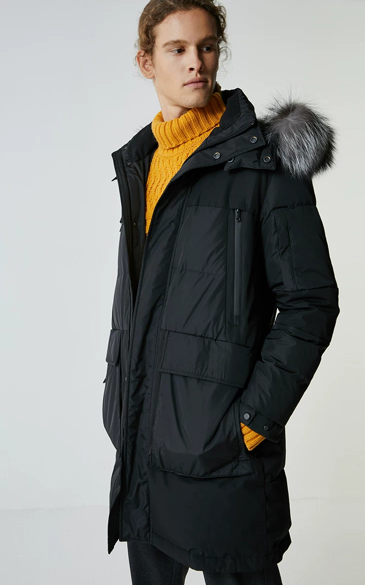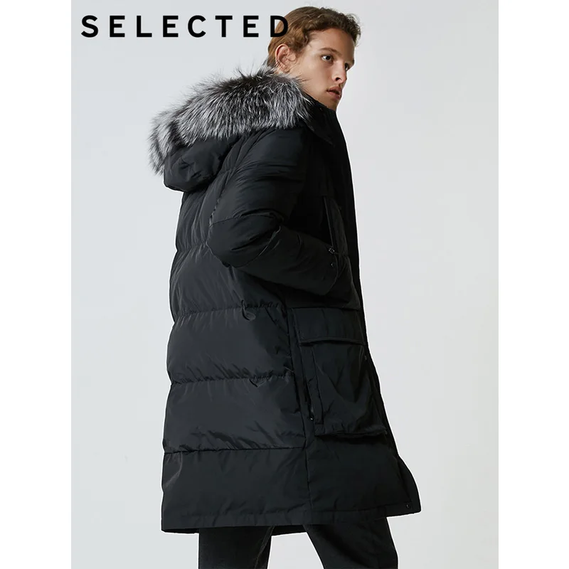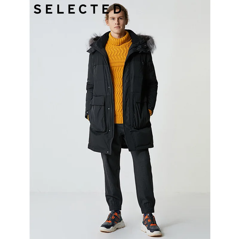 Мужская зимняя верхняя одежда средней длины с капюшоном из лисьего меха, куртка-пуховик 419412555
