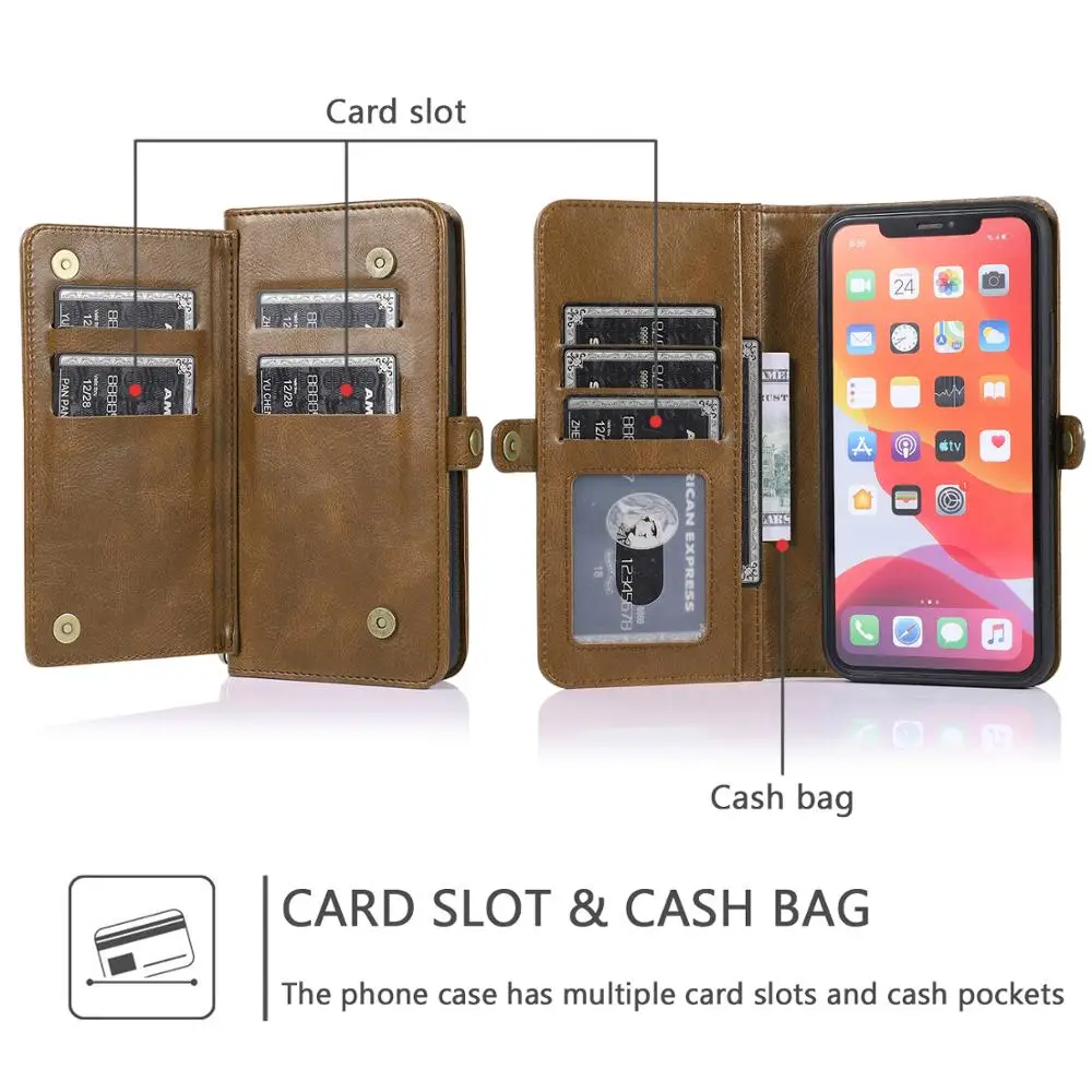 Кожаный флип-чехол для iPhone 11, съемный магнитный чехол-бумажник для сотового телефона iPhone 12 Pro Max 13 Mini XS XR 7 8 Plus, чехол
