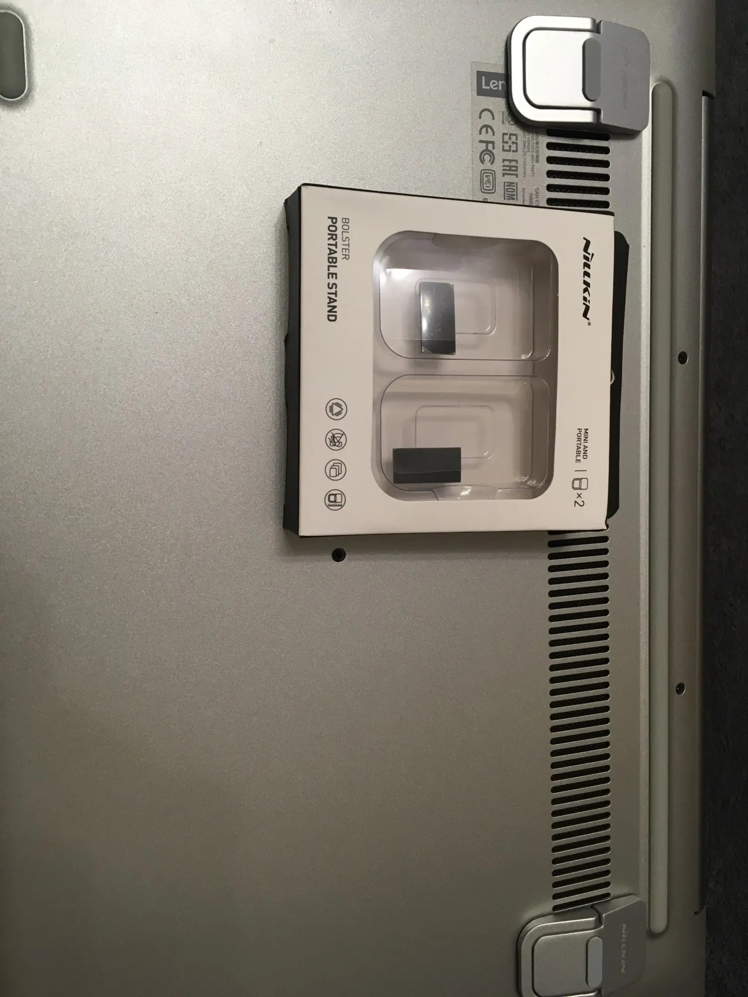 Полезная вещь, угол наклона очень удобный. Клейкая подложка надежная, но однозначно оставит следы на корпусе. Снять и переклеить заново — нереально, так как это не скотч, а мягкая прослойка, при снятии она слезет. Цвет почти совпадает с серебристым цветом макбука, смотрится хорошо. Брал за $4,8.