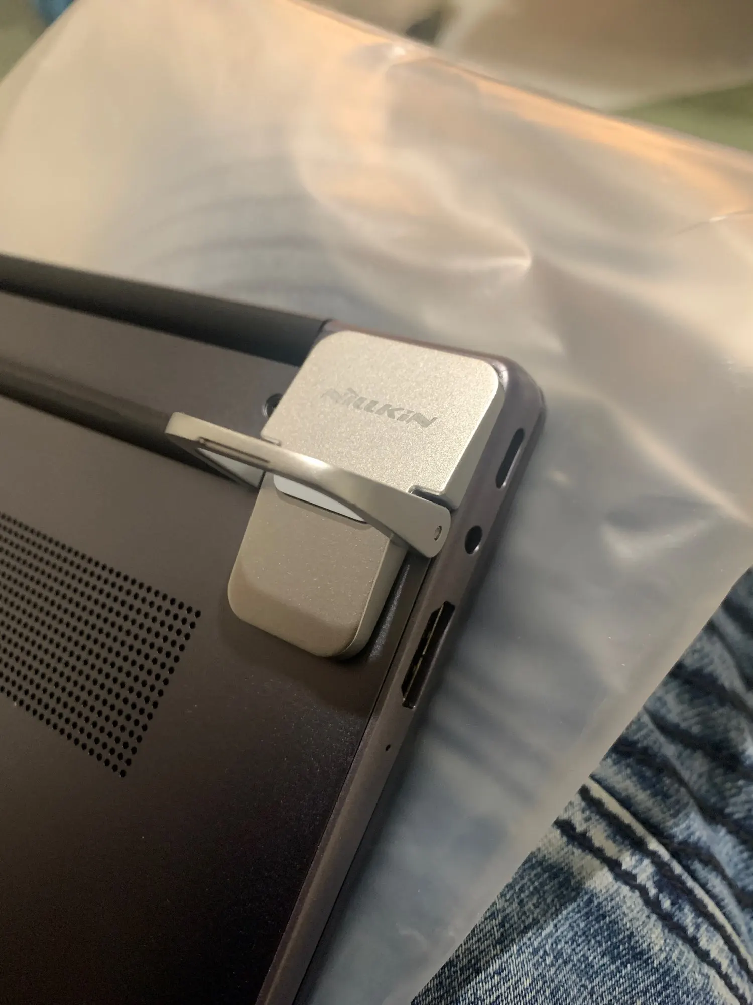 El soporte al pegarlo al notebook se baja con el peso y no queda fijo