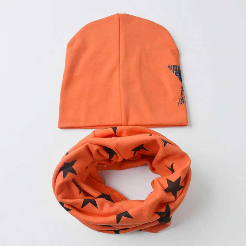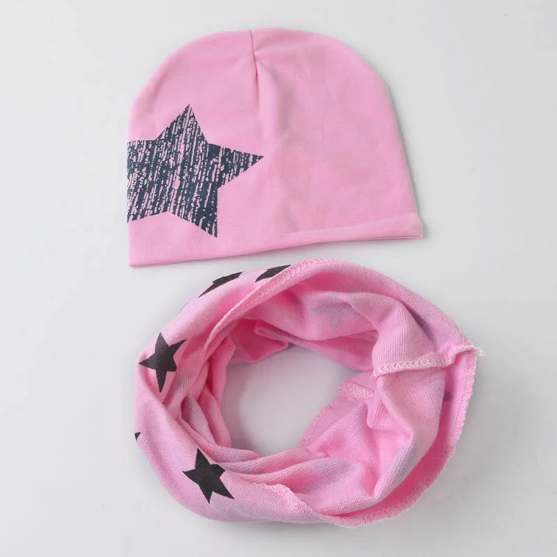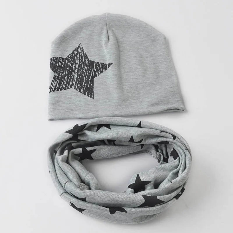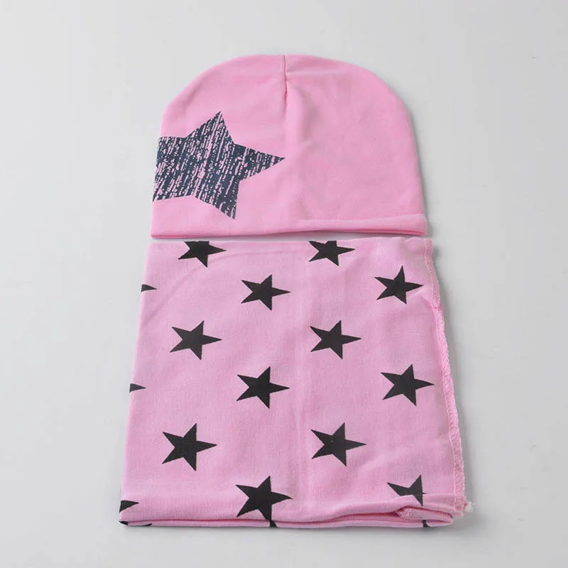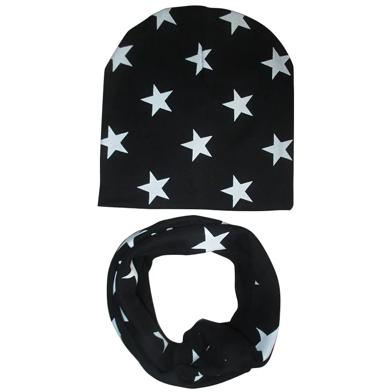 Шапочка детская осенне-зимняя, с принтом в виде звезд, для мальчиков и девочек, детский набор из шапки и шарфа, 2 шт.набор