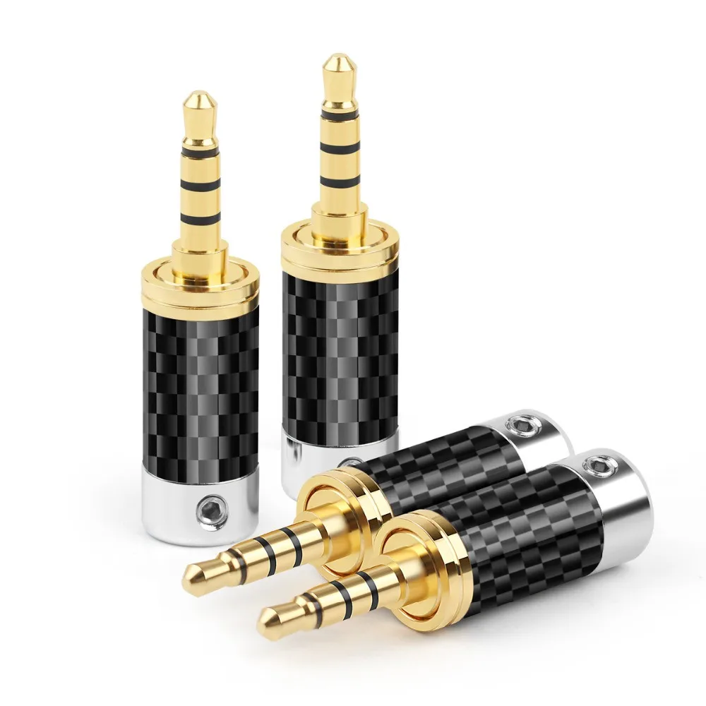 Джек 3,5 Мужской 3,5 мм 4-полюсный аудио адаптер Hi-Fi гарнитура сбалансированный штекер Золотое покрытие из углеродного волокна DIY соединители проводов мини джек