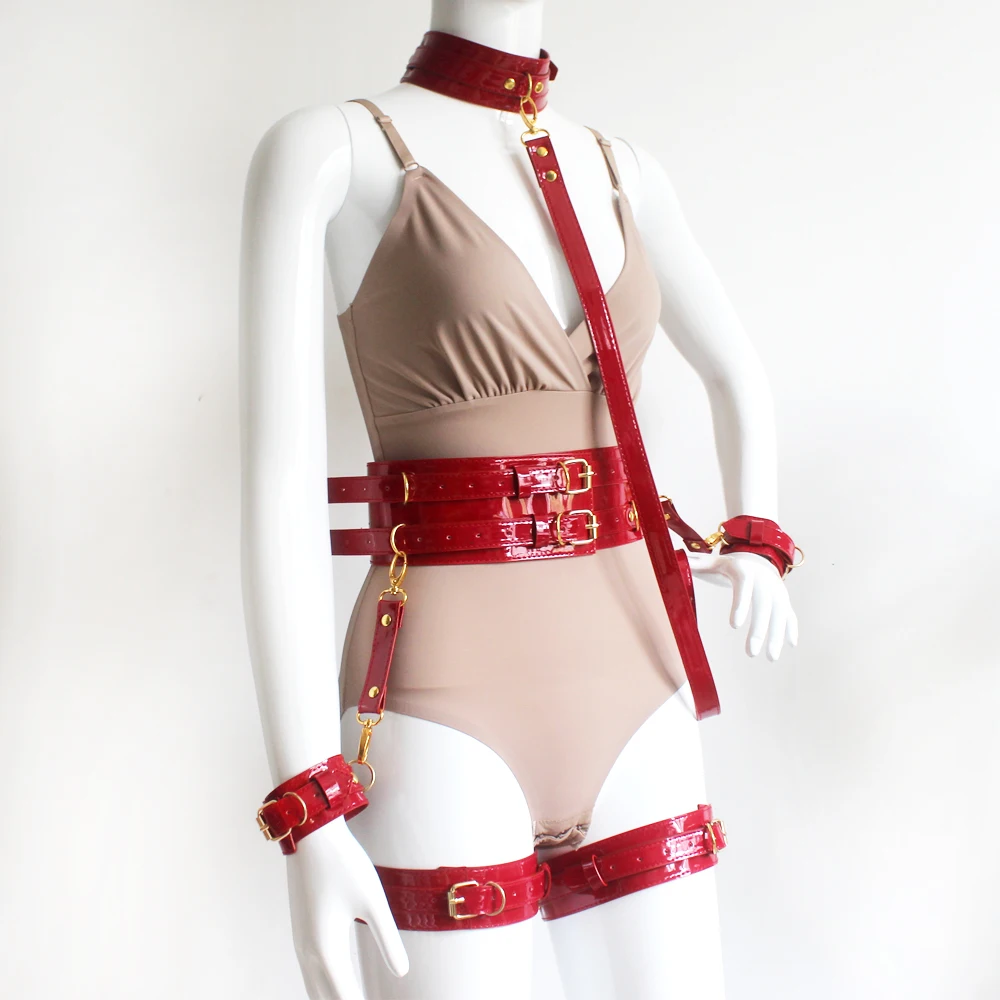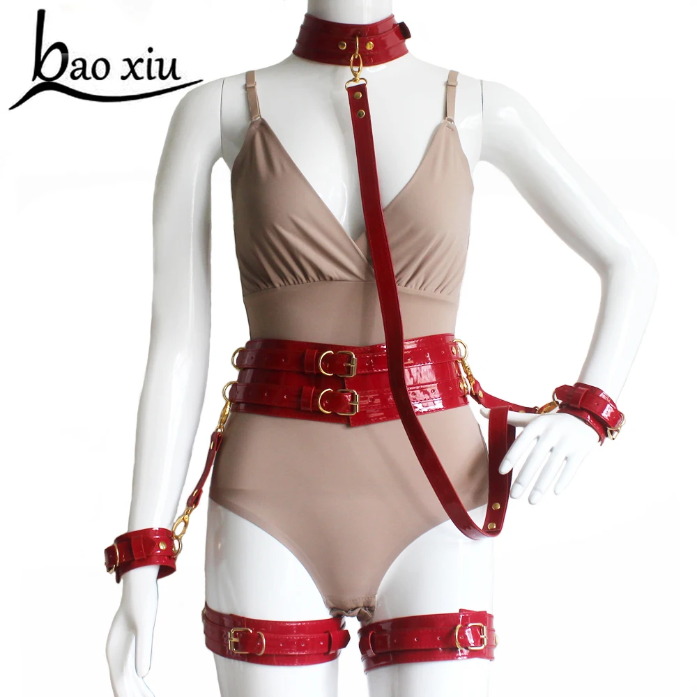 Портупея женская из искусственной кожи, с золотистыми металлическими подвязками, красного цвета, в готическом стиле, ремни-подтяжки