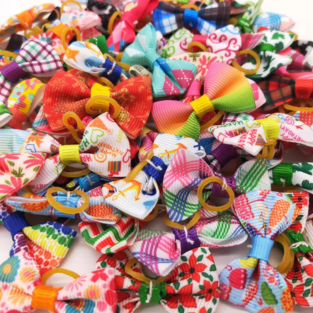 50 шт. ручной работы смешанный стиль щенок собака волосы лук резиновые ленты для домашних животных луки для маленьких собак
