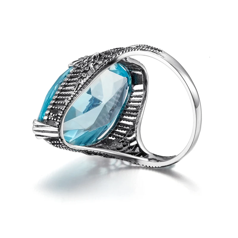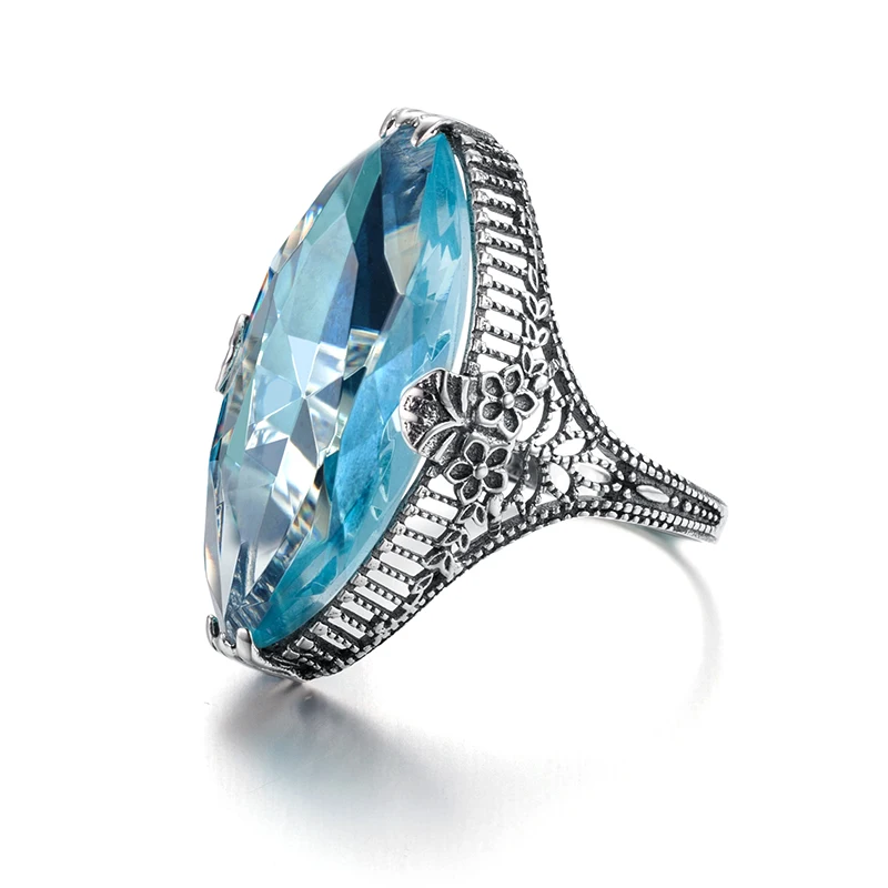 Бренд: Rosewood StoryТип камня: синтетический АквамаринРазмер основного камня: 14*26 ммЧеткость камня: VVSЦвет камня: ПрозрачныйФорма камня: глазТип металла: Настоящее 925 пробы сереброMeatal Цвет: античное сереброВес изделия: 6 гРазмер кольца: США #5,#6, #7,#8,#9,#10
