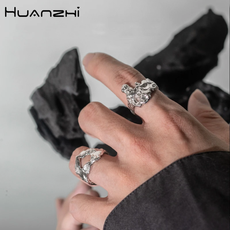 HUANZHI 2020 Новое металлическое кольцо с геометрическими фигурами, необычное, с вырезами, с текстурой лавы, складывается, для женщин, девушек, вечерние, хит продаж, ювелирное изделие, подарок