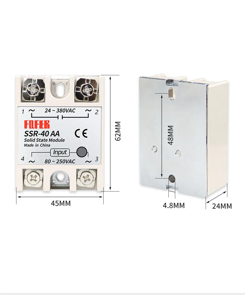 Однофазный твердотельный релейный модуль SSR-40AA, 10AA, 25AA, 60AA...