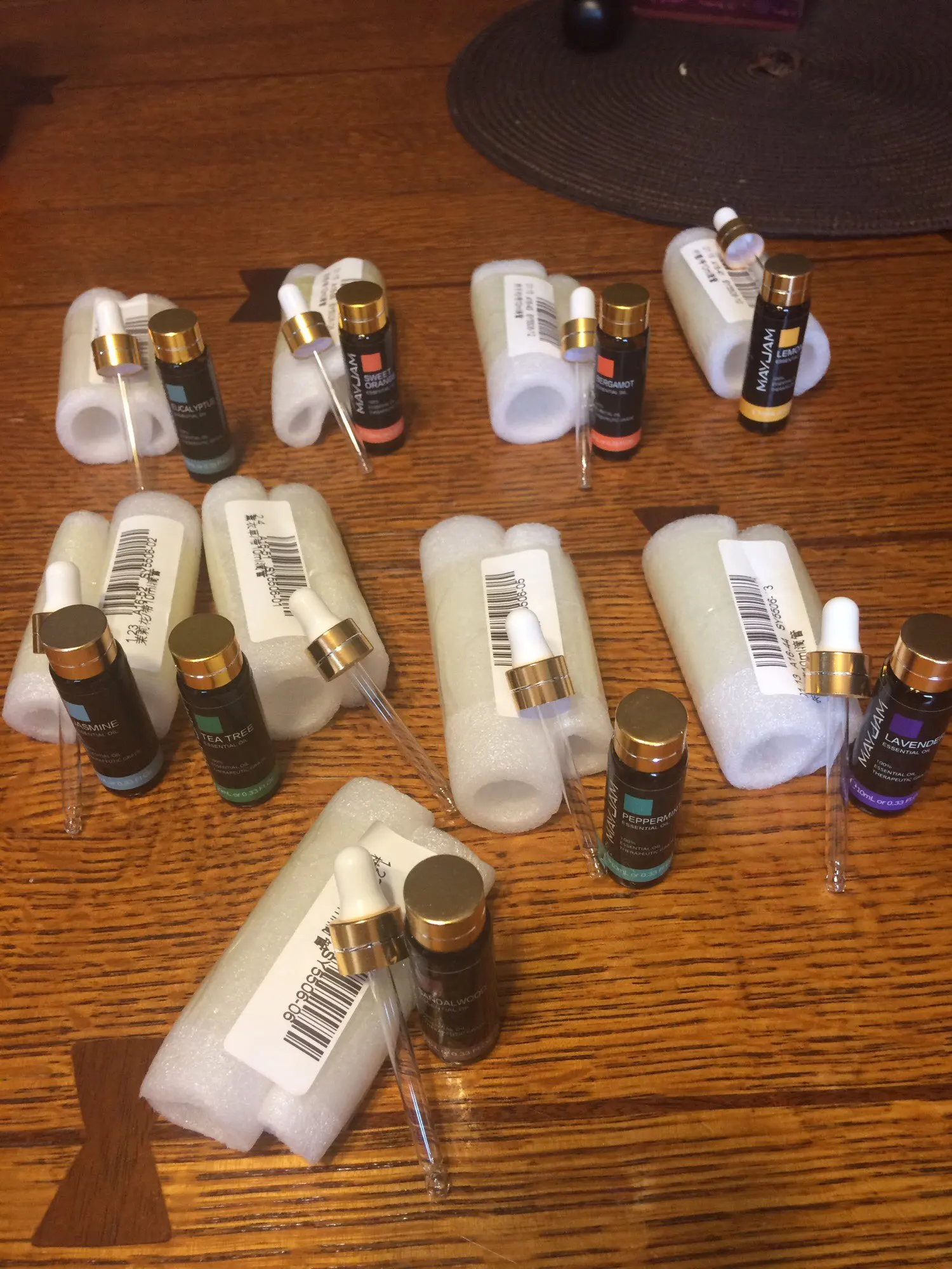 Доставка около месяца до Московской области. Упакованы очень надёжно, флаконы с маслом прибыли целые и невредимые. Флакончик закрыт крышечкой, прилагается пипетка, которая наворачивается вместо крышки на флакон. Запах приятный, использую в диффузоре.
