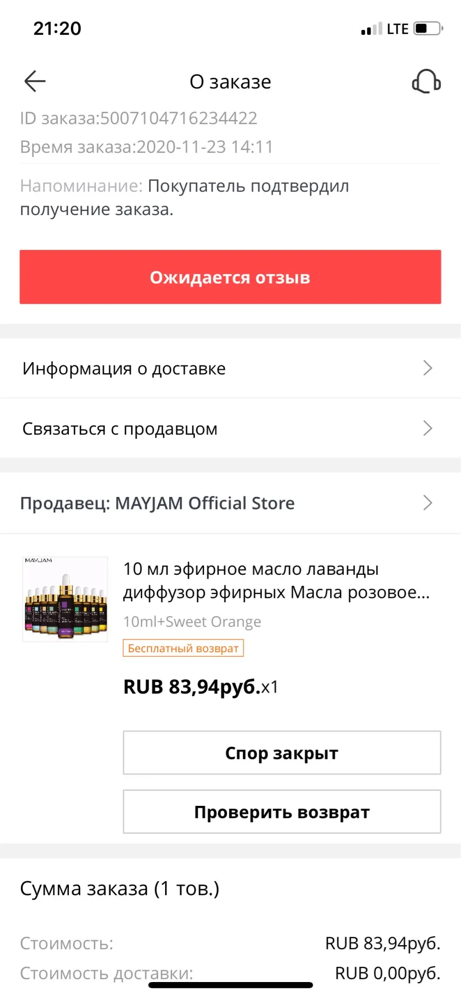 Пока авансом ставлю 5 баллов, у меня защита закончилась и просит отзыв, но вижу что девочки получают эти масла, значит и моя где-то ещё в пути, надеюсь по крайней мере. трек не отслеживается. Дополню отзыв потом, посмотрим, придёт или нет..