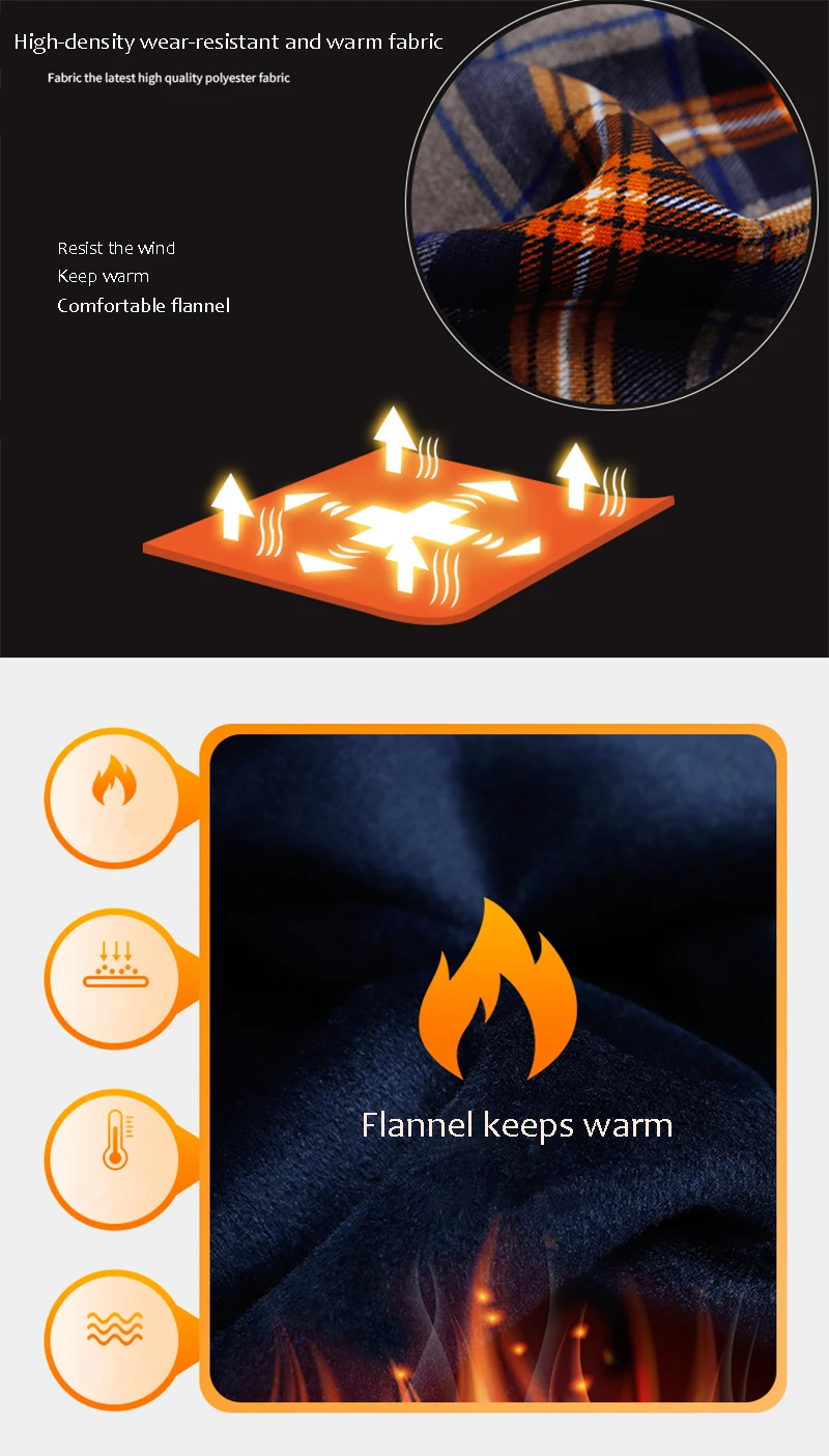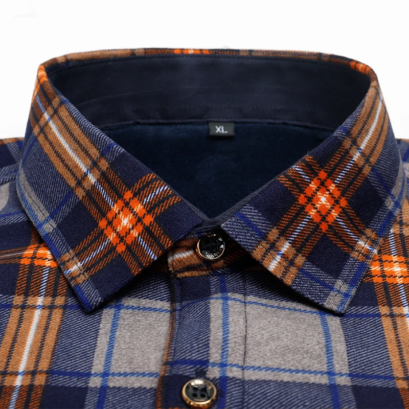 Мужская Фланелевая рубашка с длинным рукавом, с флисовой подкладкой