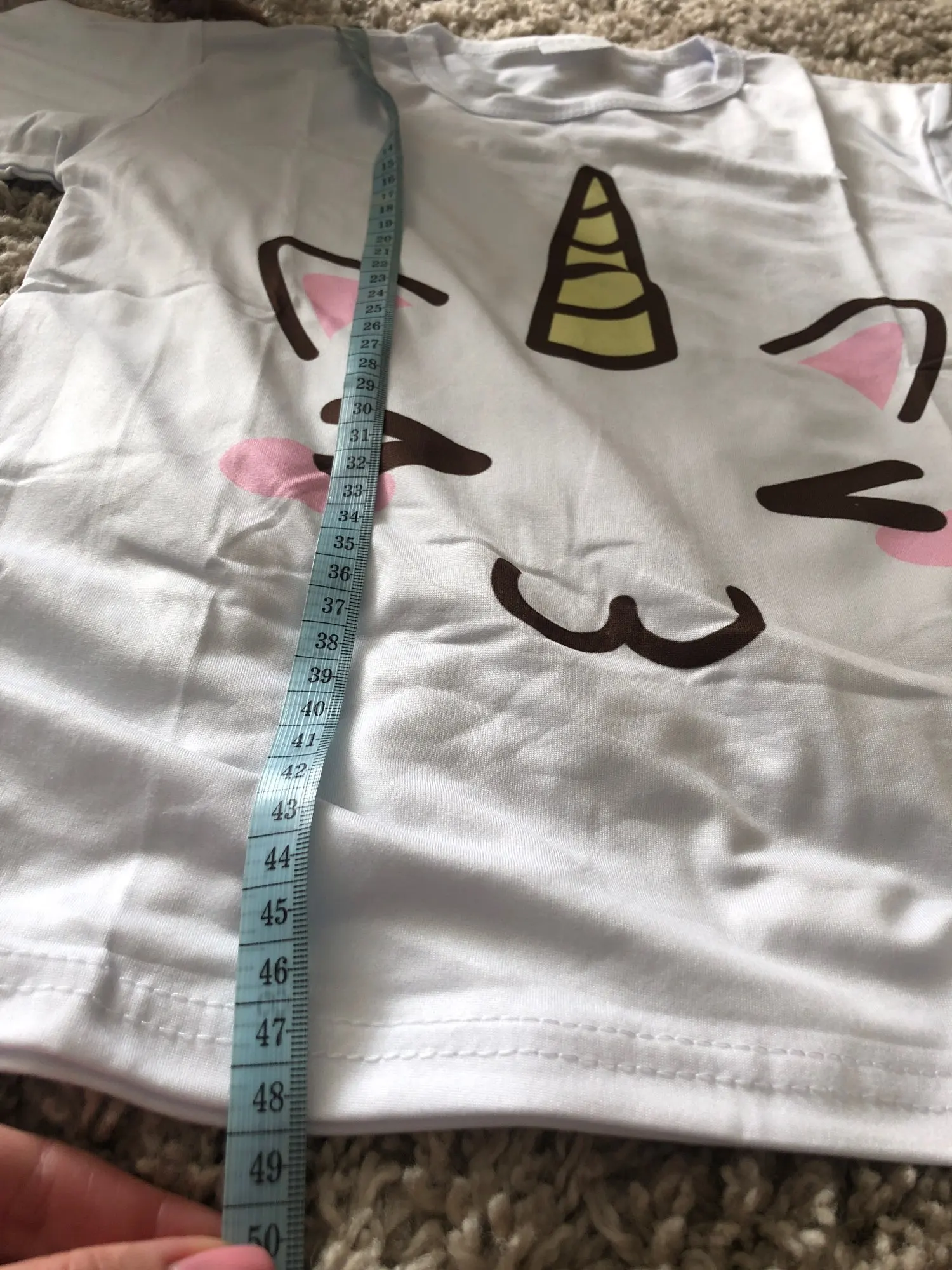 Детская футболка с милым рисунком единорога и лица, летняя белая футболка в стиле Харадзюку для маленьких мальчиков и девочек, детская мультяшная одежда, ooo5177