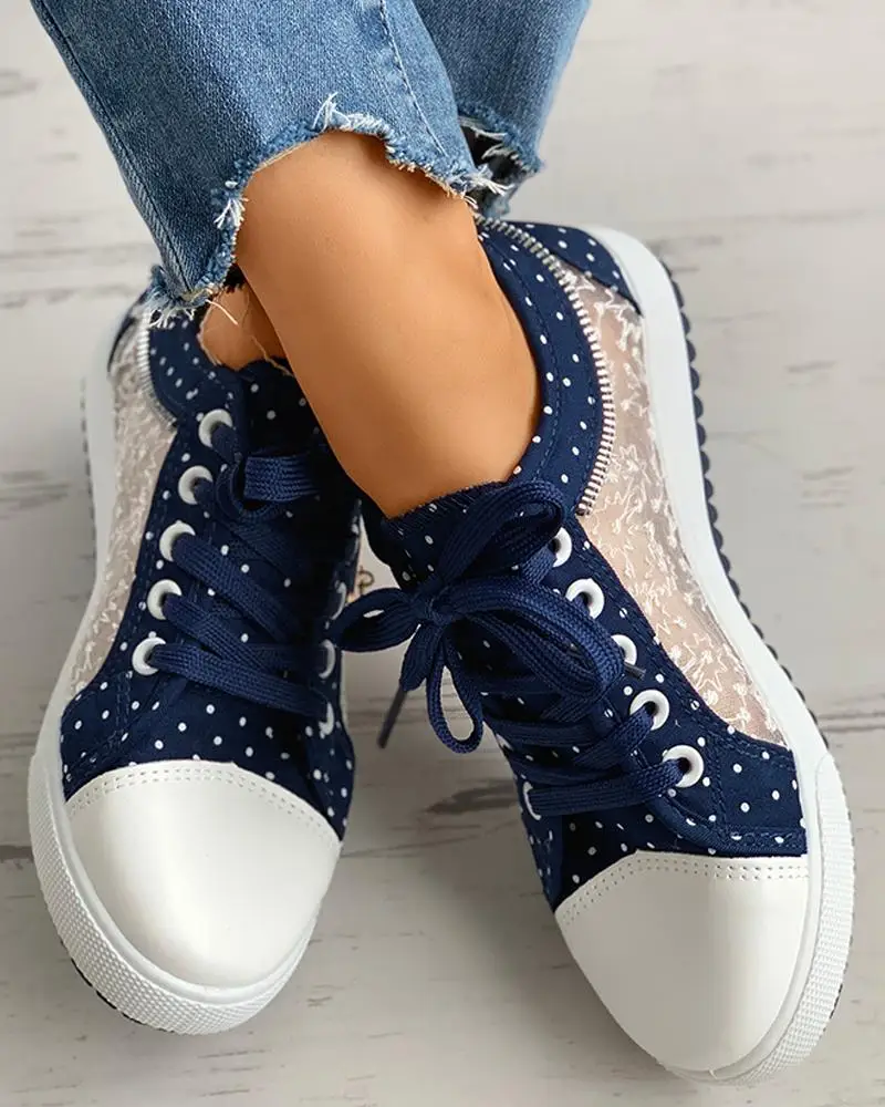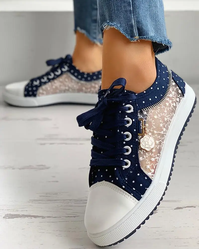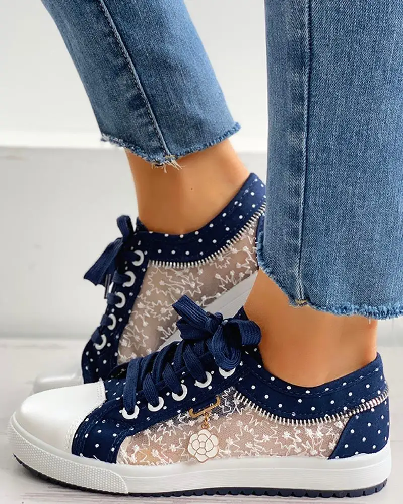 Кеды LIHUAMAO женские, на шнуровке, с цветочным принтом, с вышивкой, в горошек