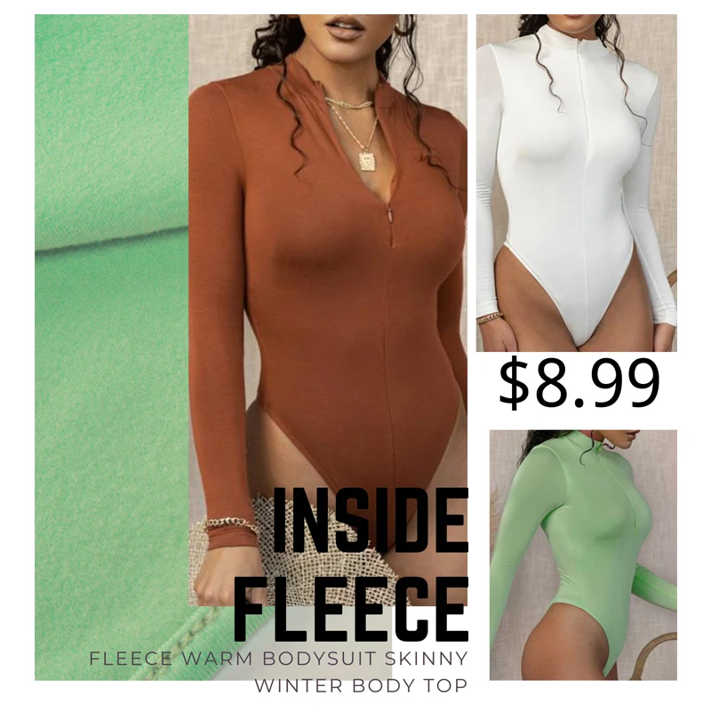 Черта:Женский облегающий флисовый боди INGOO, белый однотонный облегающий боди с v-образным вырезом и длинным рукавом на молнии на осень и зиму