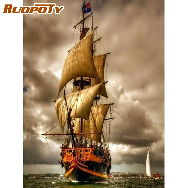 GATYZTORY Sea Landscape DIY масляная краска по номерам набор акрило...