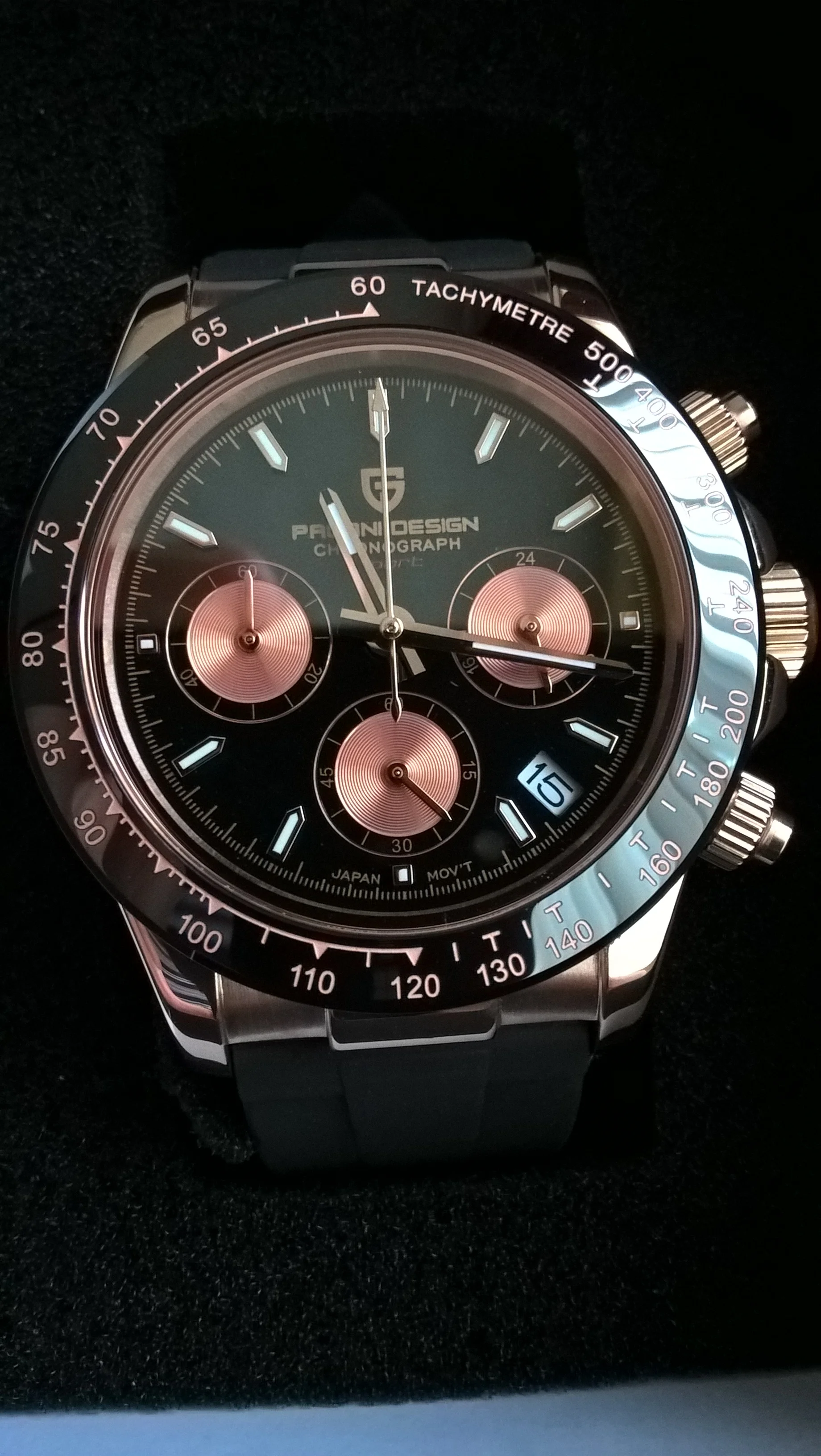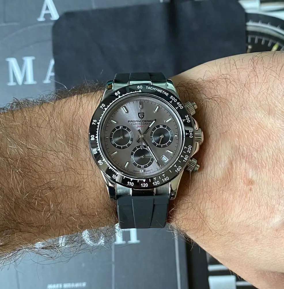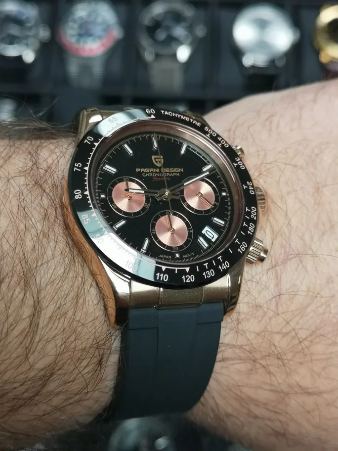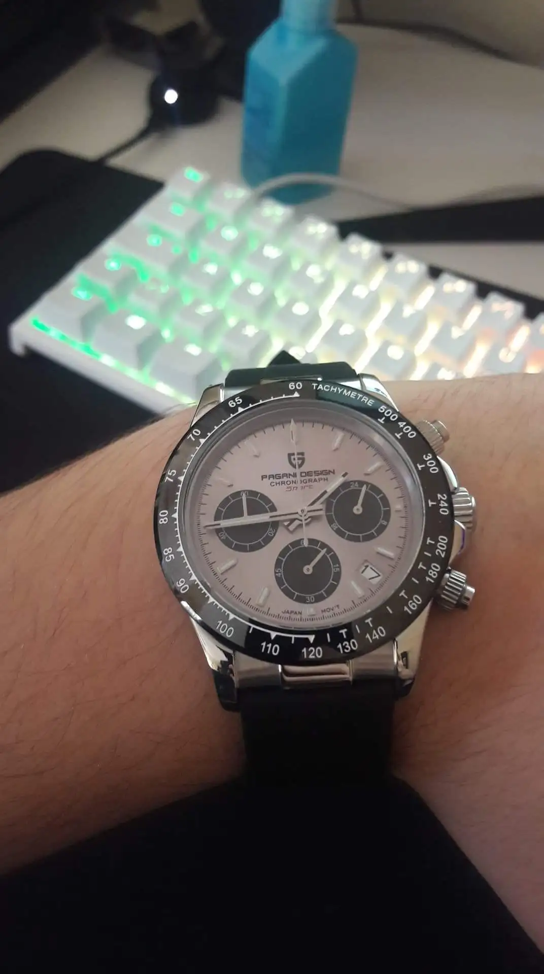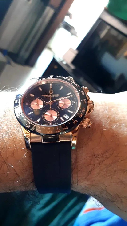 В целом впечатлен этим, очень хорошо за цену. Это мой второй комплект Пагани. Во-первых, у одного возникли проблемы с установкой и не удалось решить -- циферблат не находится в центре корпуса. Этот товар не идеален, но за цену я могу принять, так как он выглядит очень хорошо. Надеясь, что резиновый ремешок держится, потому что он очень удобный, мягкий на ощупь и может сломаться в любое время