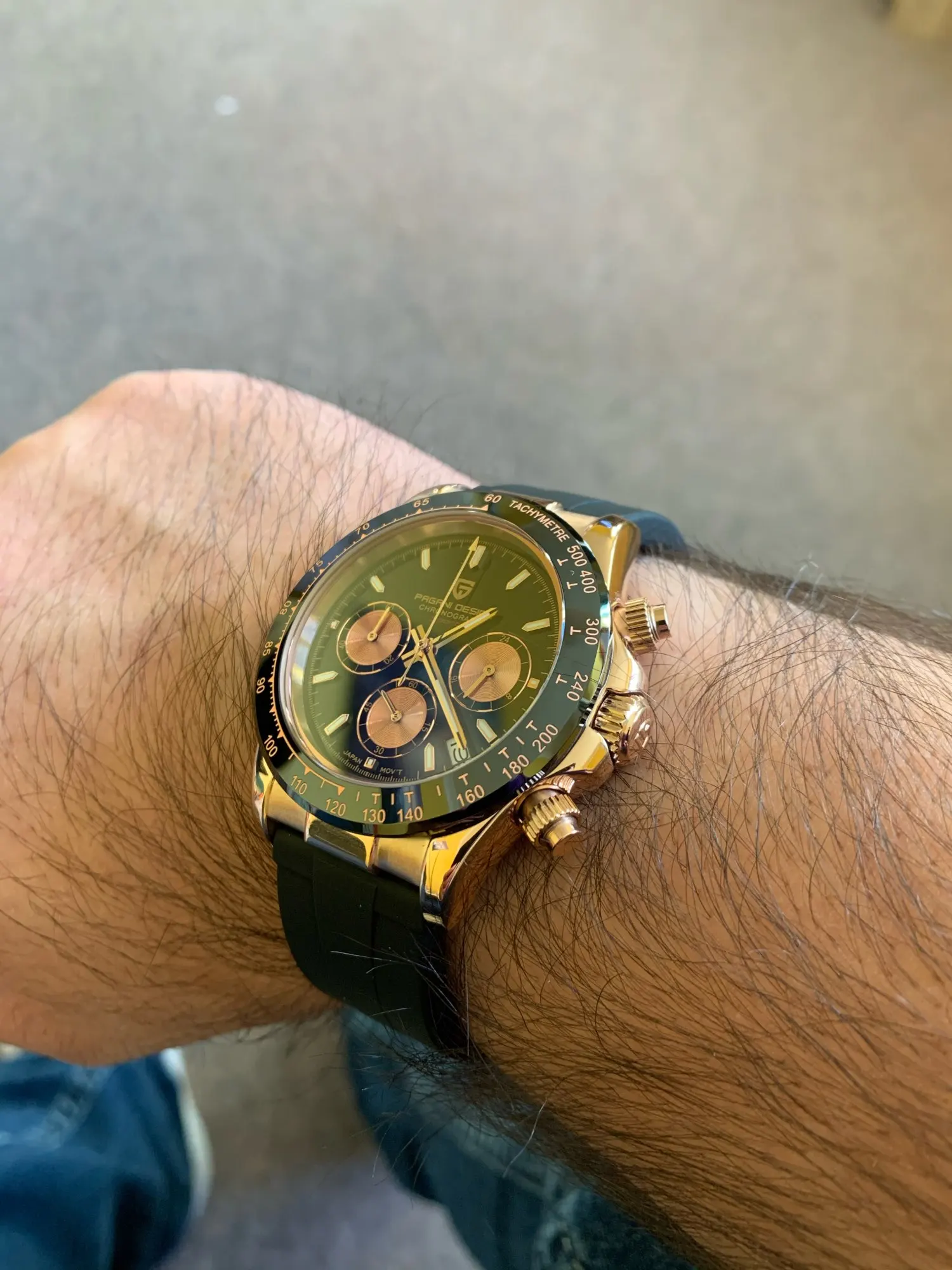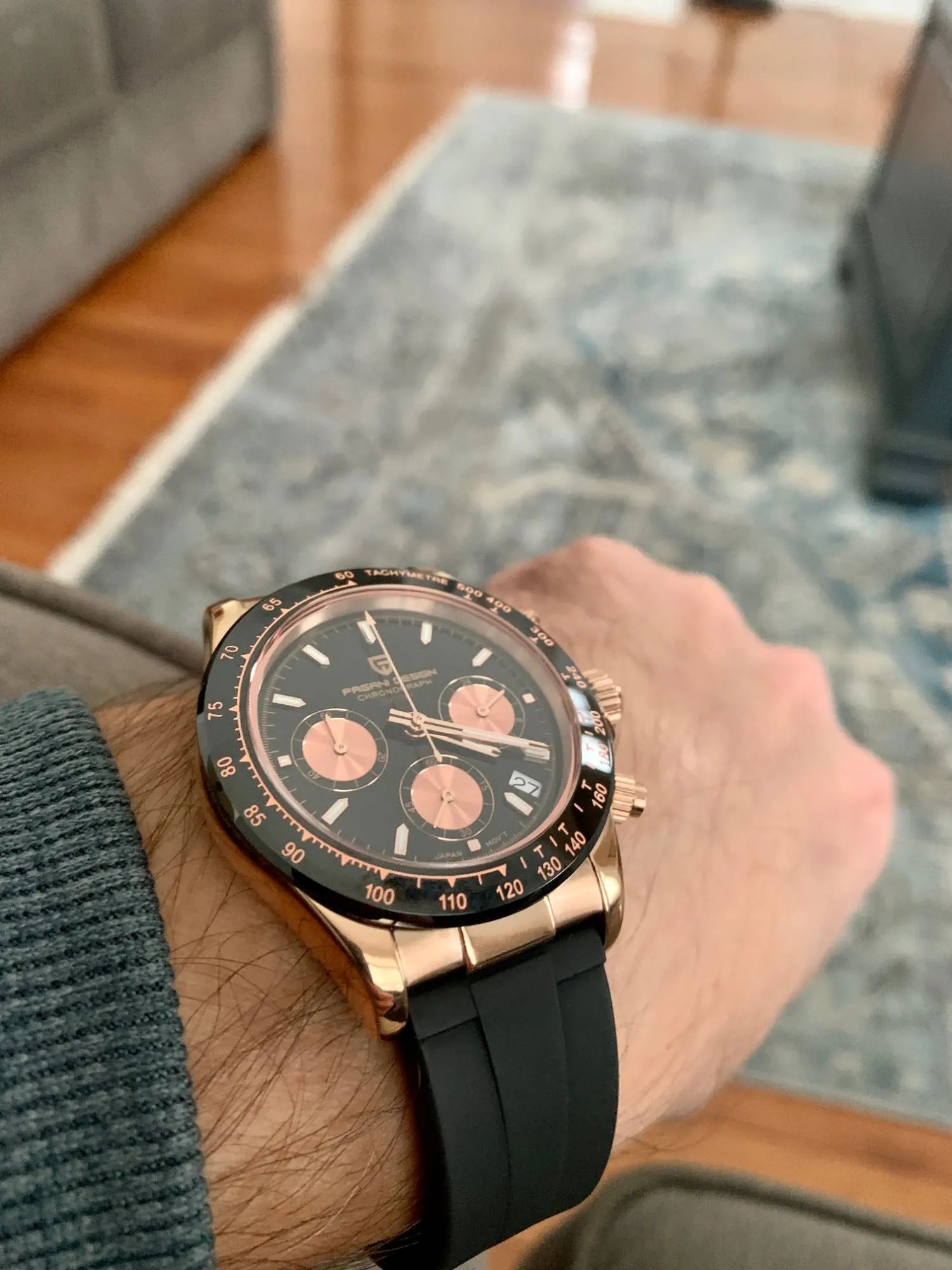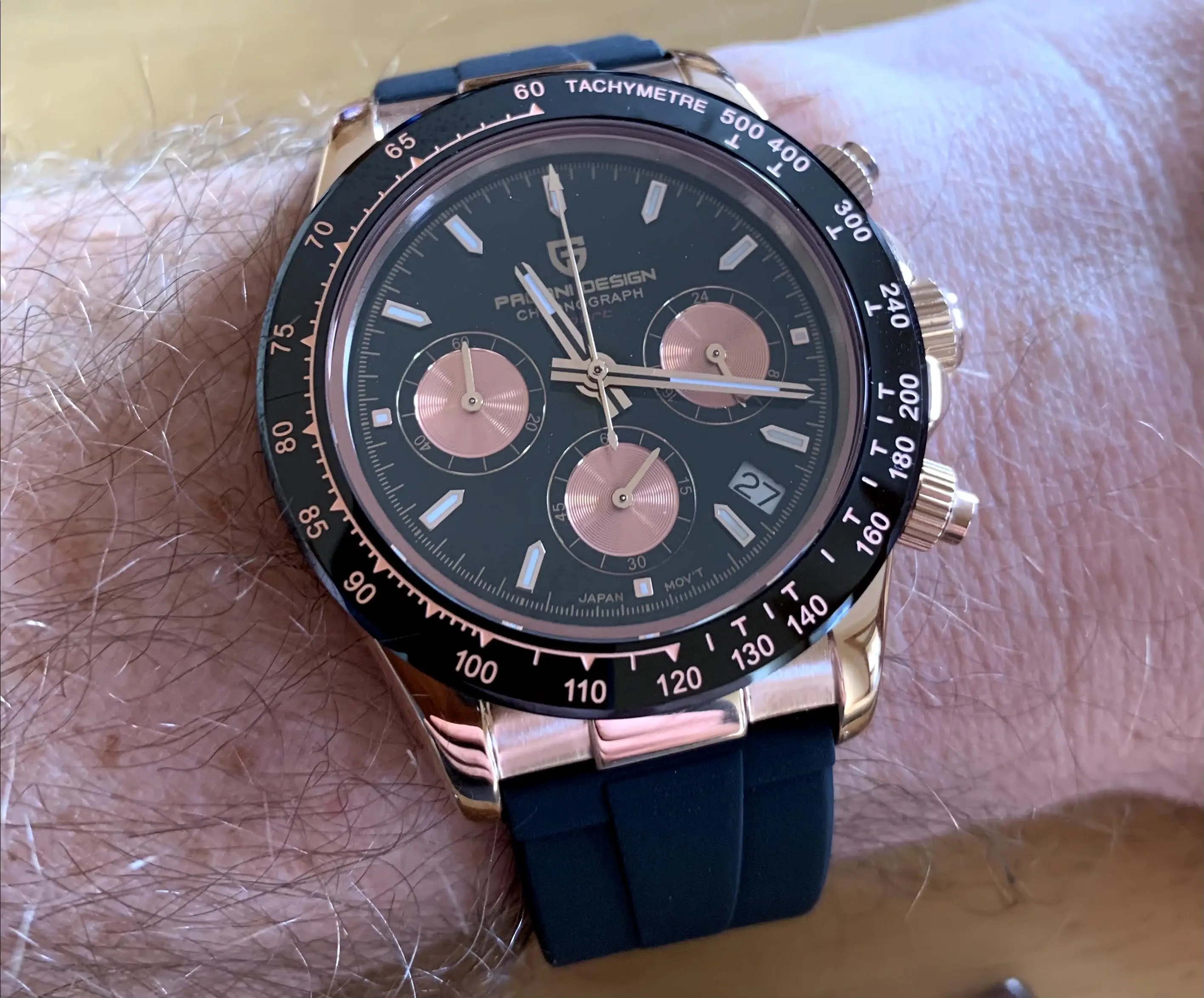 В целом впечатлен этим, очень хорошо за цену. Это мой второй комплект Пагани. Во-первых, у одного возникли проблемы с установкой и не удалось решить -- циферблат не находится в центре корпуса. Этот товар не идеален, но за цену я могу принять, так как он выглядит очень хорошо. Надеясь, что резиновый ремешок держится, потому что он очень удобный, мягкий на ощупь и может сломаться в любое время