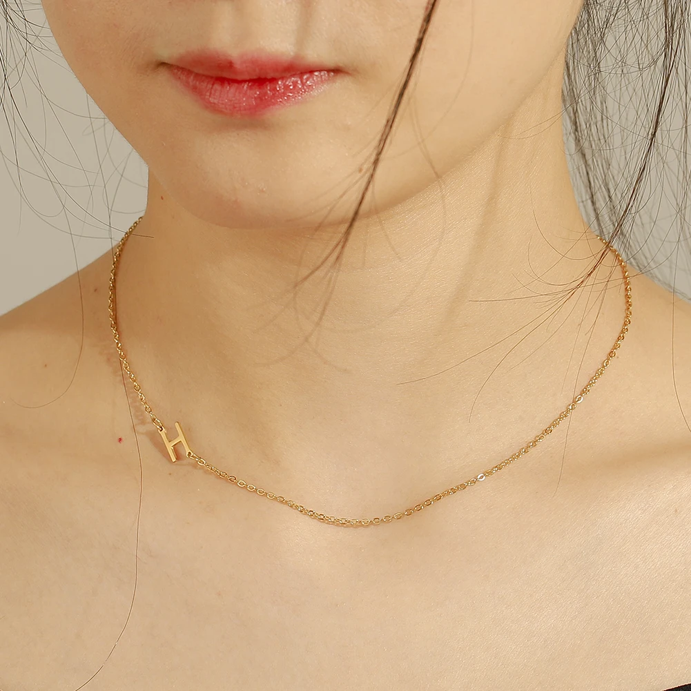Fishhook Колье-чокер цвета розового золота, нержавеющая сталь, английская буква, алфавит, название, асимметричное, для женщин, мужчин, кулон, ювелирное изделие