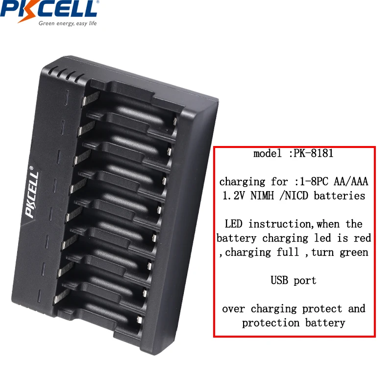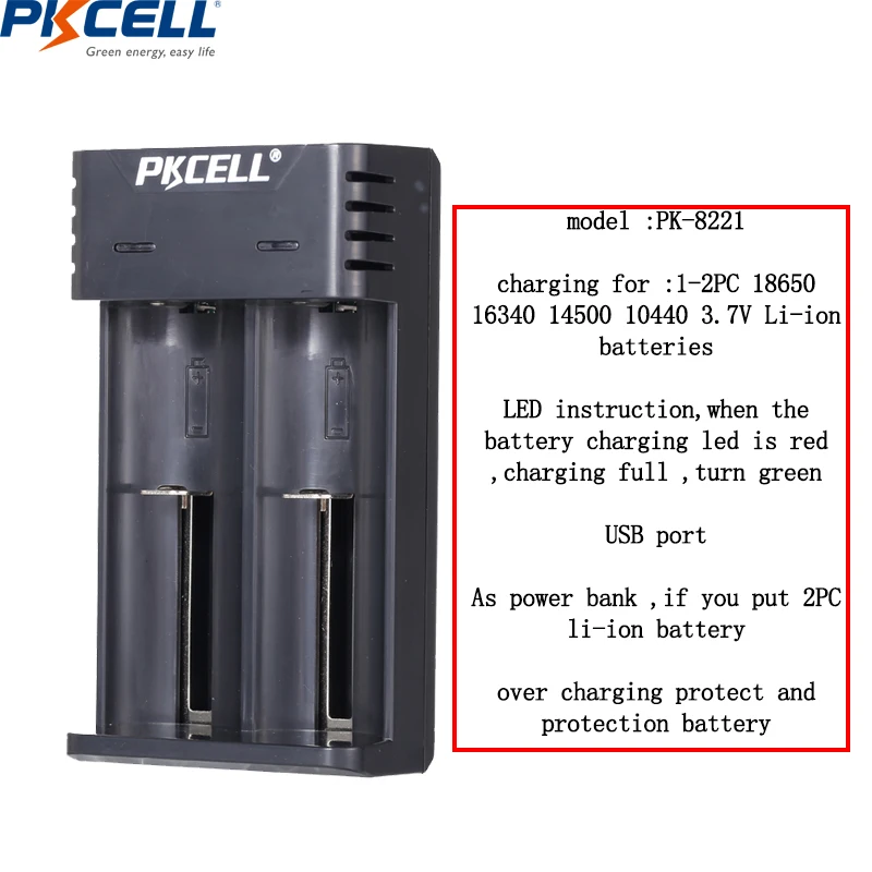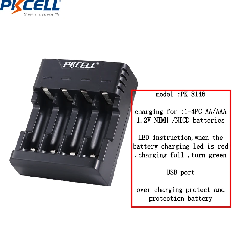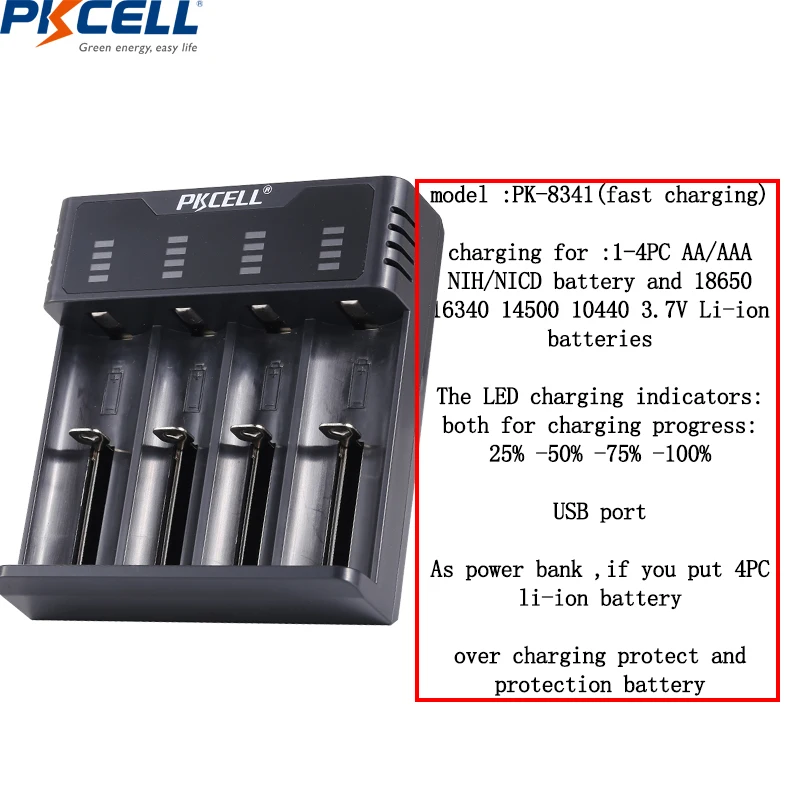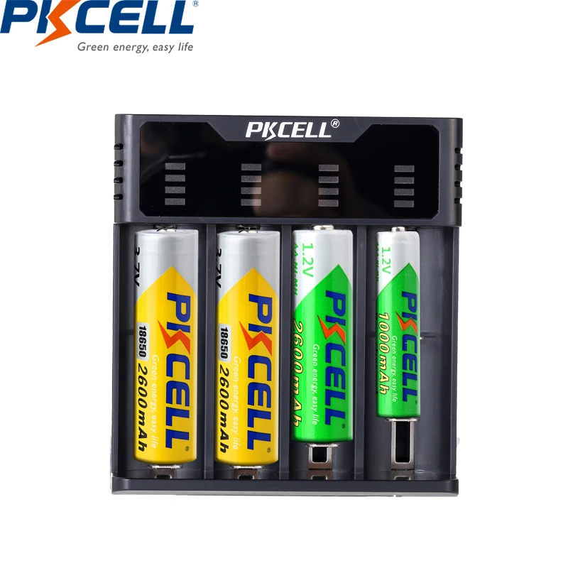 Зарядное устройство для батарей Pkcell, c функцией быстрой зарядки, с USB, для батарей 18650, 26650, 21700, AAAAA, литиевых, NiMh, NiCd