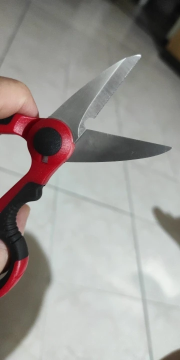 Металла непожалели. Хорошие силовые ножницы. Одна половинка режущей части с зазубринами. Это делается для удержания трудноразрезаемых предметов. Плетёнку неплохо режет. Но иногда недорезает микроволокна.