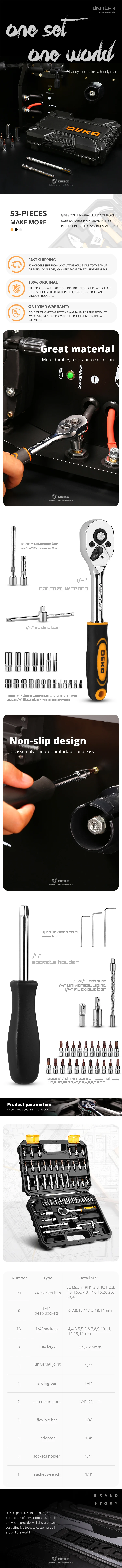 DEKO 53 шт,набор инструментов,инструменты,Инструменты для ремонта автомобиля, набор многофункциональных торцевых головок, динамометрический ключ, ящик для инструментов для деревообработки, портативный набор для ремонта