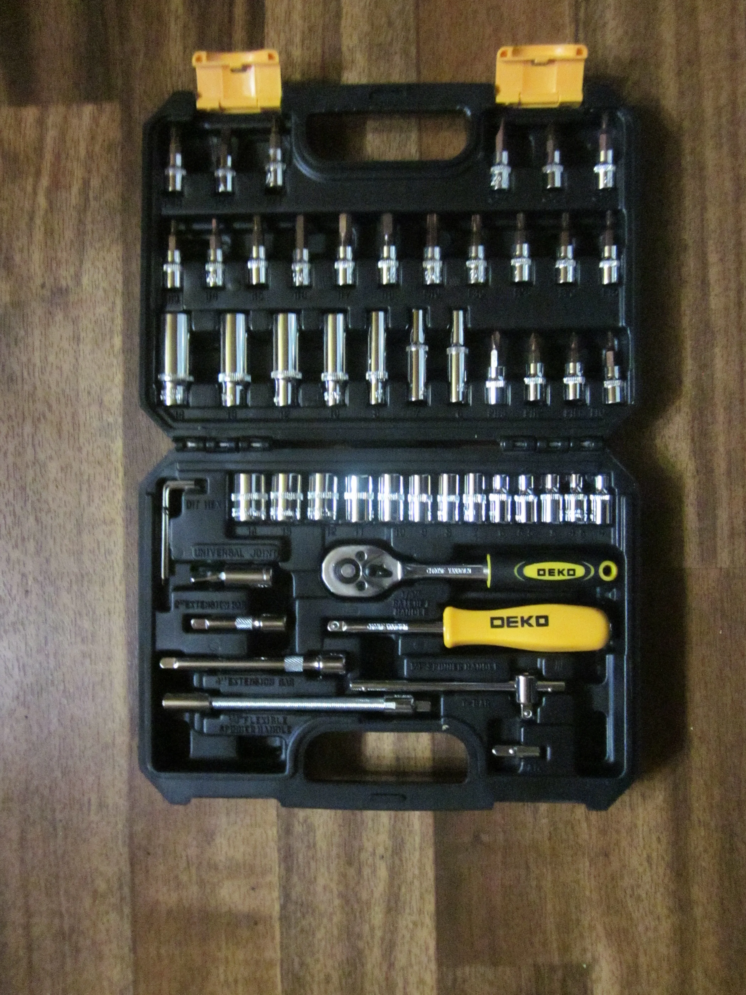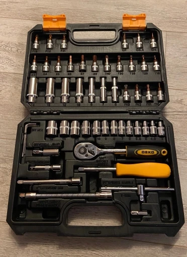 Этот набор инструментов игрушка, самая большая головка 14. Материал слабый. Написано 53 предмета, в наборе оказалось 52. В ящике одно место свободно с лева внизу. Игрушка. В кастораме купил за 1600 руб намного лучше и больше набор. Сравните набор арсенал и этот набор.
