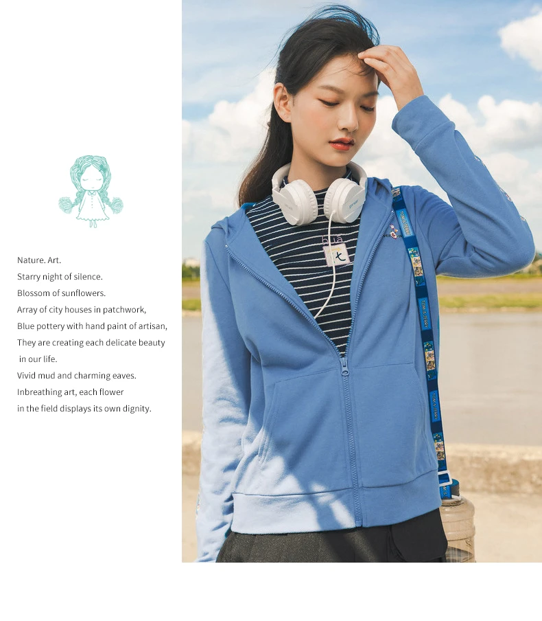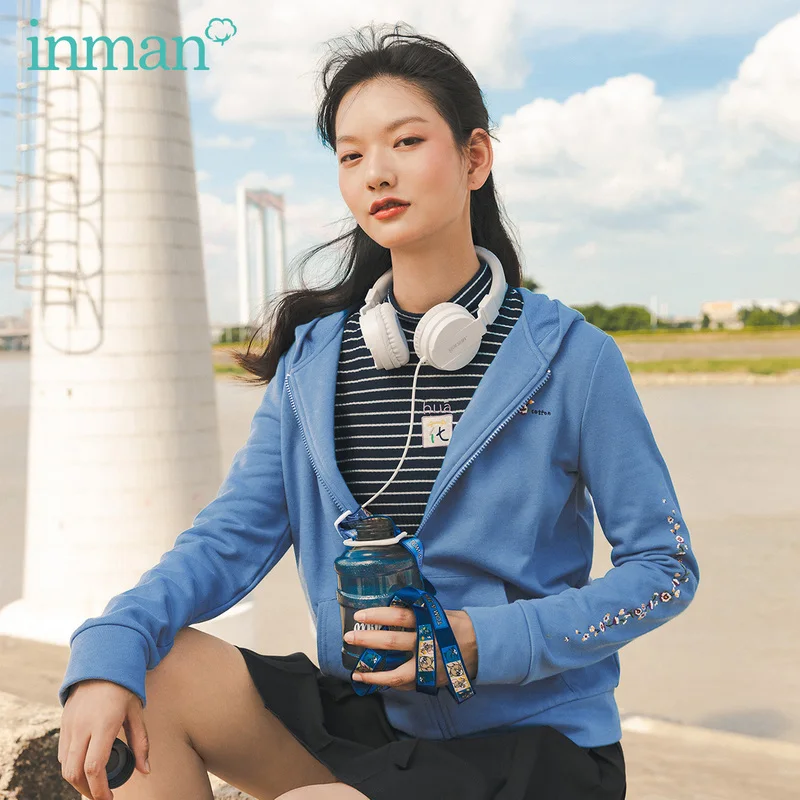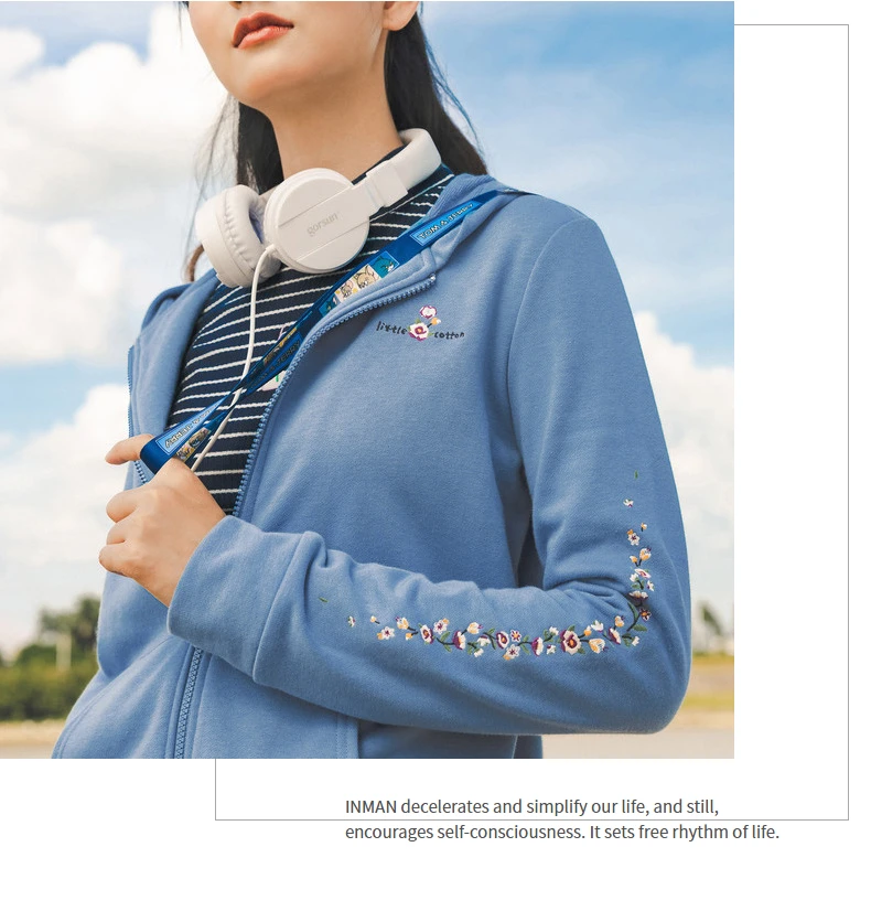INMAN осень зима свежий Женский вышитый с капюшоном с длинным рукавом на молнии хлопковая куртка толстовка