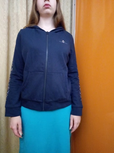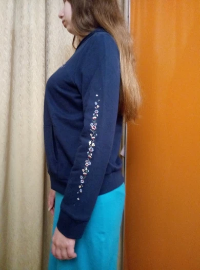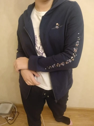 Кофта понравилась, отличное качество, вышивка на рукавах и спереди цветочек. По размеру подошла на наш 46-й, не больше, на рост дочери 165 - отлично, на мой 172 и плечи 39-40 не очень комфортно . У продавца есть еще спорт. кофты, для тех, кто носят 48-й подойдут. Рекомендую!