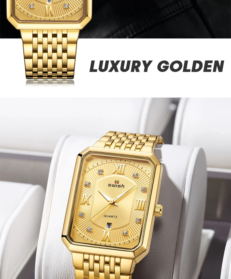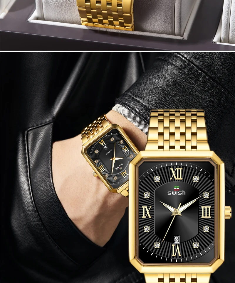 Роскошные золотые мужские часы SWISH 2022 с новым дизайном, квадрат...