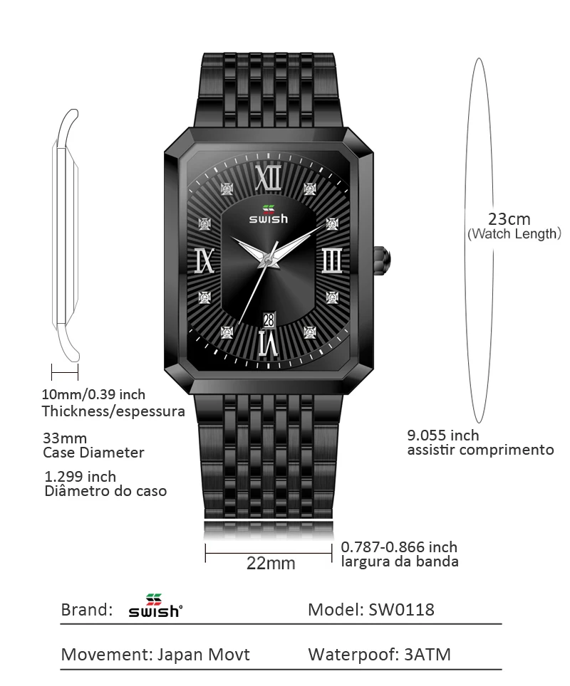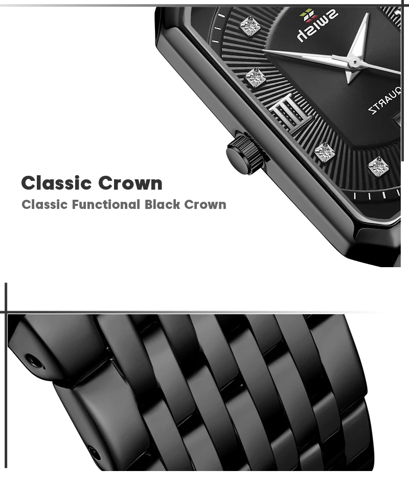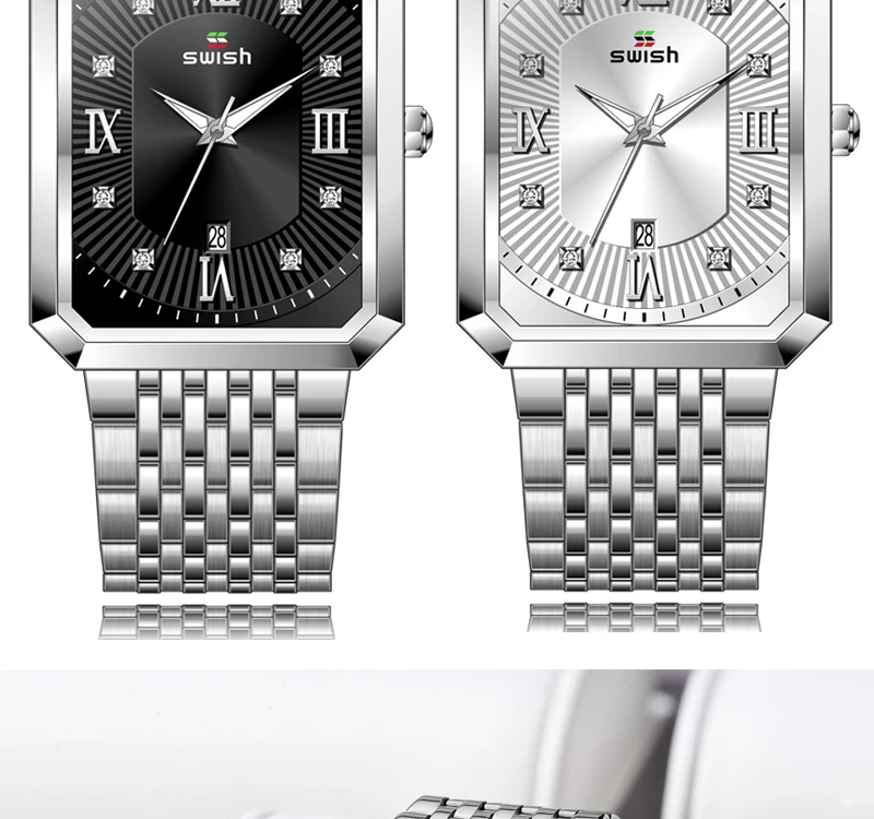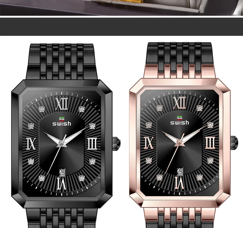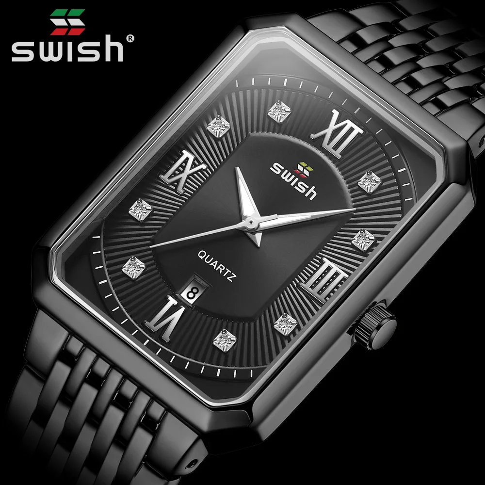 Часы наручные SWISH мужские из нержавеющей стали, модные квадратные...