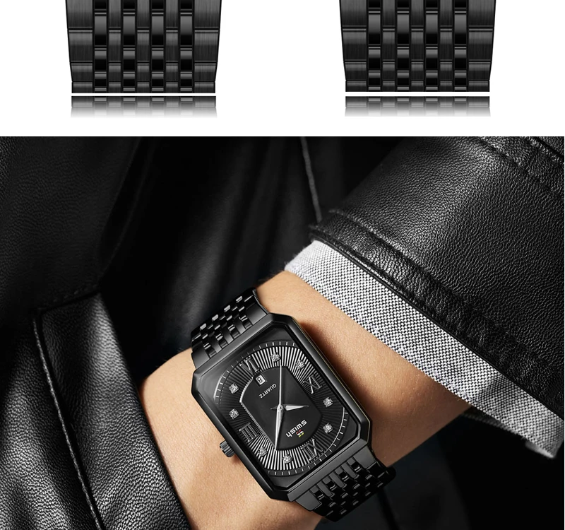 Черные стальные часы для мужчин Топ бренд класса люкс креативный алмаз прямоугольник кварцевые наручные часы мужские reloj hombre