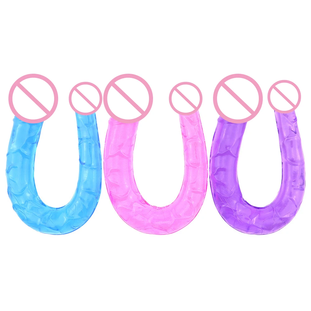 U-образный двойной фаллоимитатор, мастурбатор, гибкое мягкое желе, Вагина, Анальный Стимулятор клитора, массаж для женщин, геев, лесбиянок, двойной конец, Донг, пенис, искусственные дилдо, секс-игрушки для взрослых