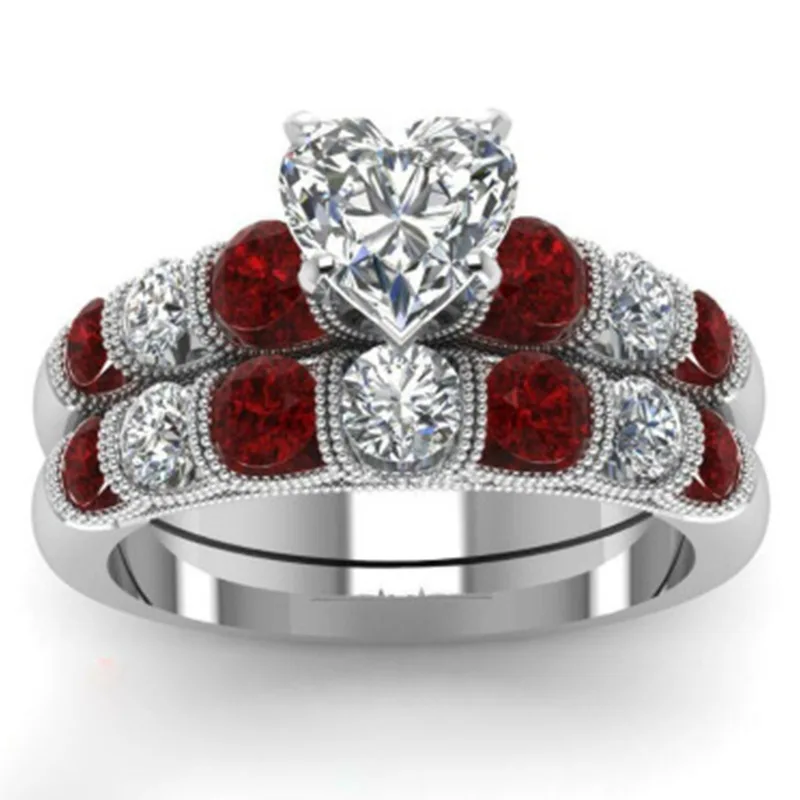 2 шт.компл. Новый дизайн Винтажный роскошный набор колец с красным сердцем из циркония для женщин и девушек ювелирные изделия для вечерние Ринок
