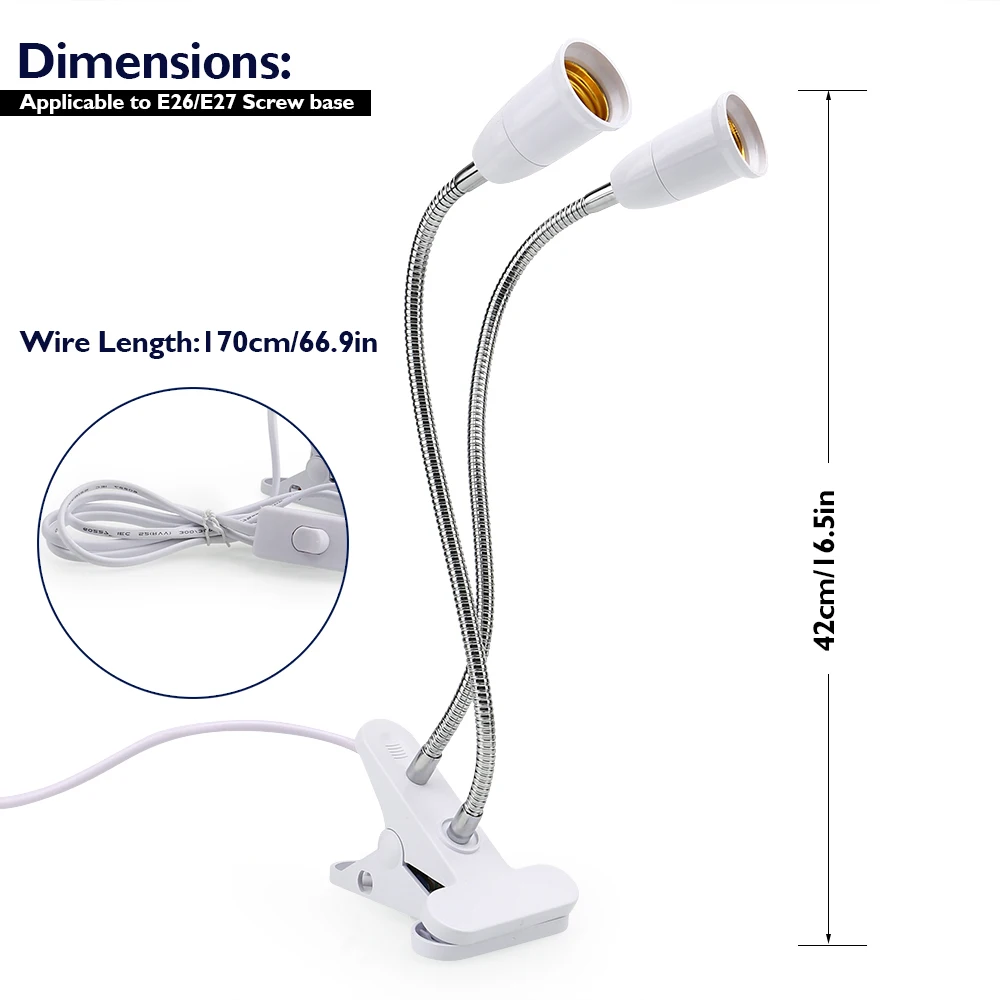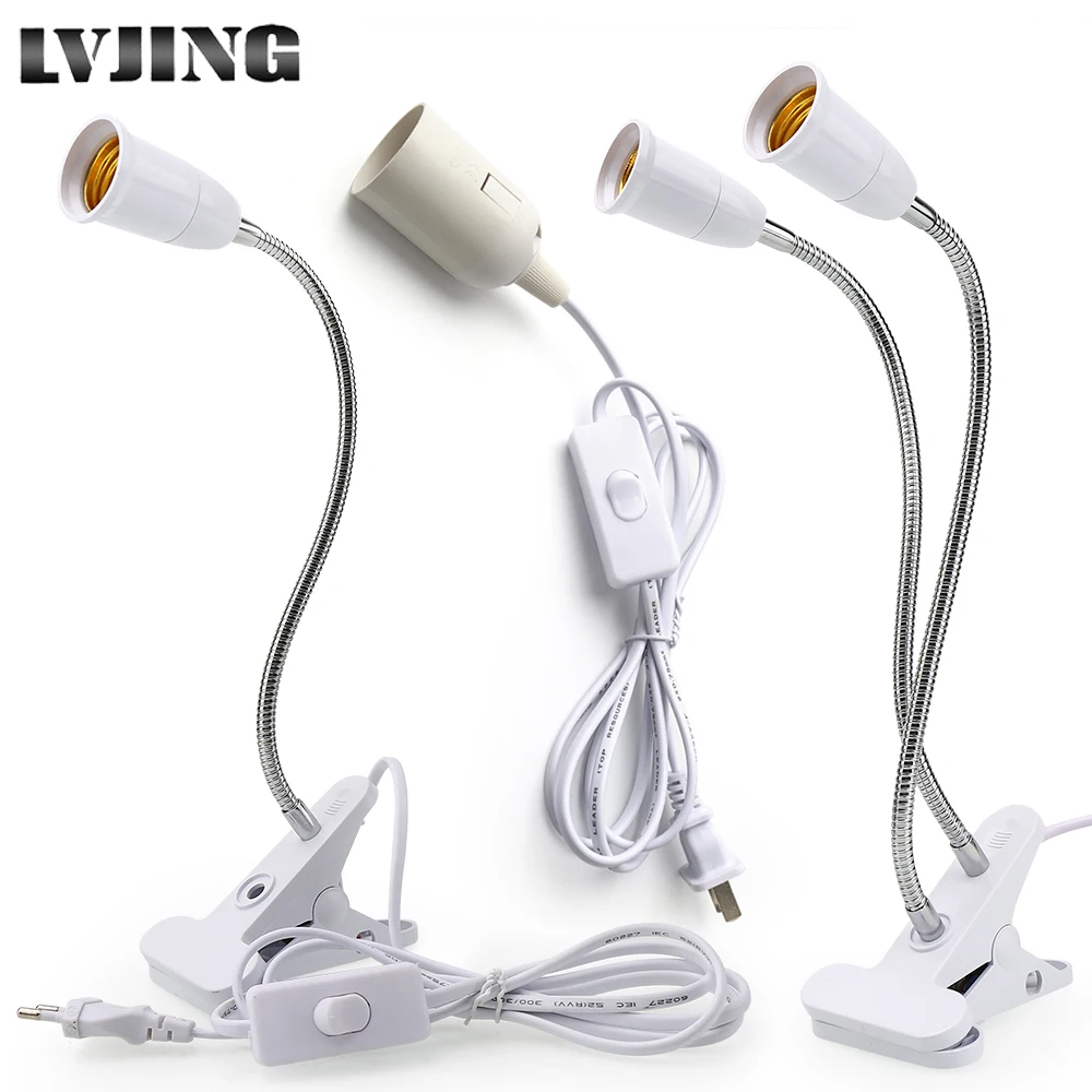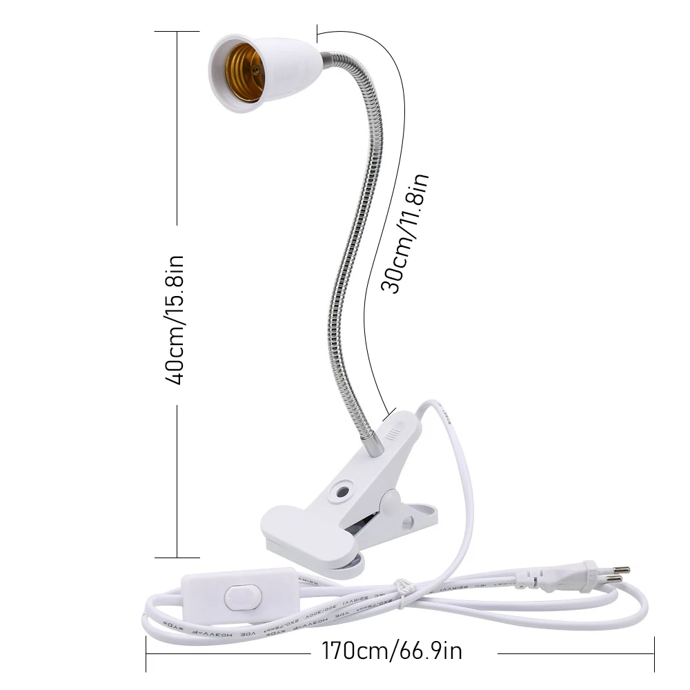 Гибкий Настольный держатель для лампы E27, штепсельная вилка стандарта EUUS, 360 градусов, кабель для зажим s-образной формы с выключателем, для домашних растений