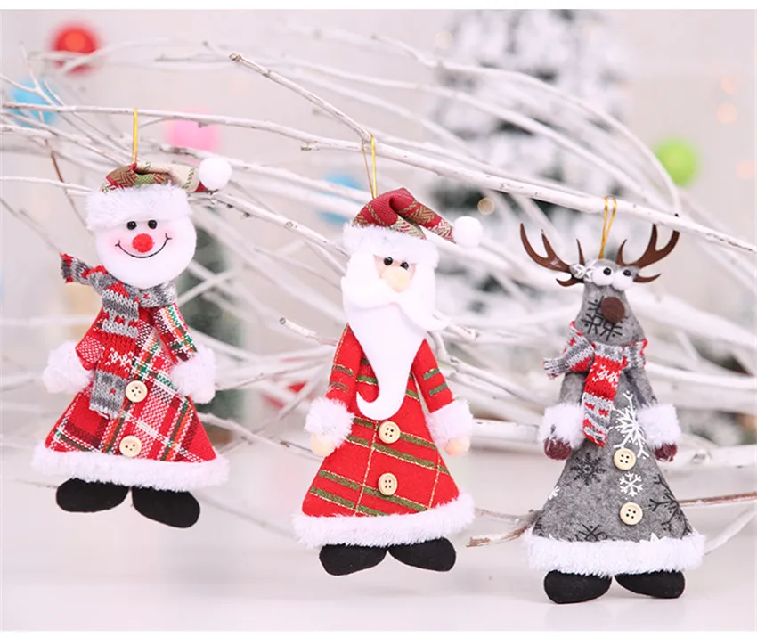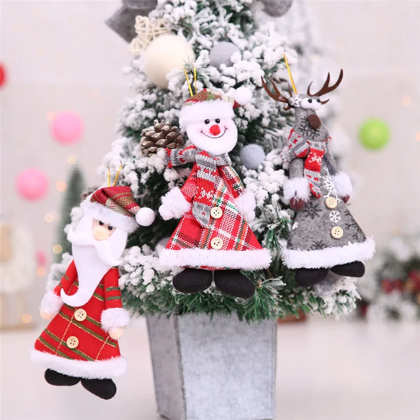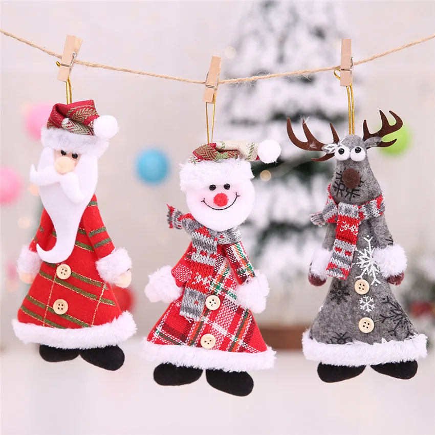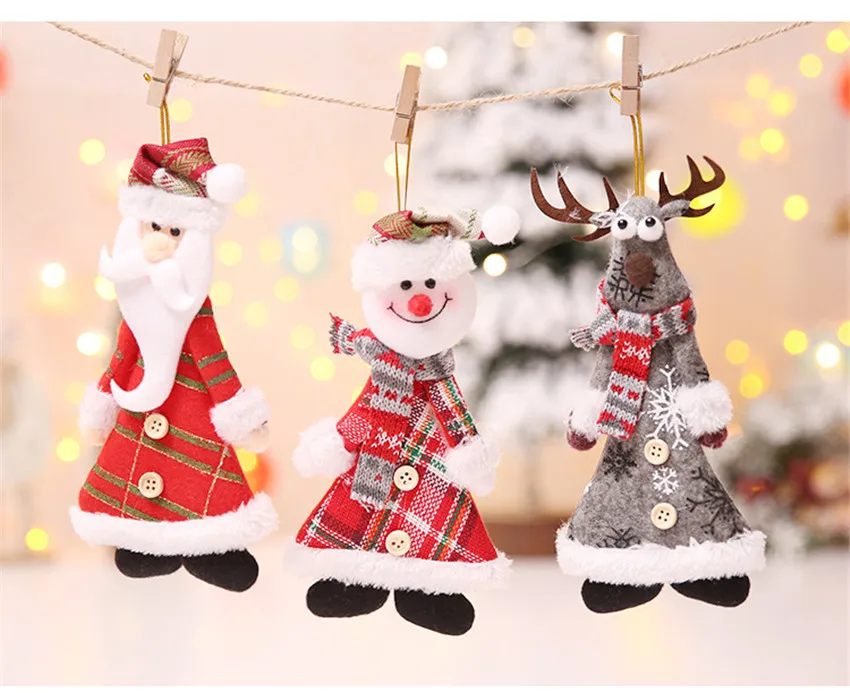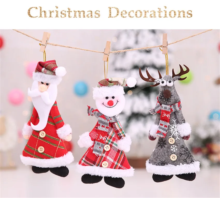 Рождественские украшения Санта-КлаусСнеговикЛось куклы Рождественская елка подвесные кулоны для украшения дома Новогодние Детские Gfits